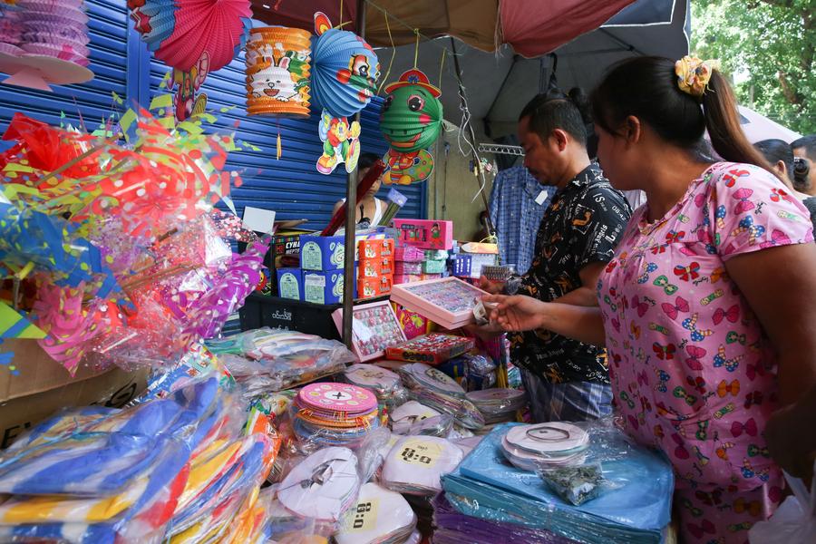 Stalls selling lanterns and other festive items have come alive in downtown Yangon. Some of these stalls are adorned with Chinese lanterns, with most products imported from China.