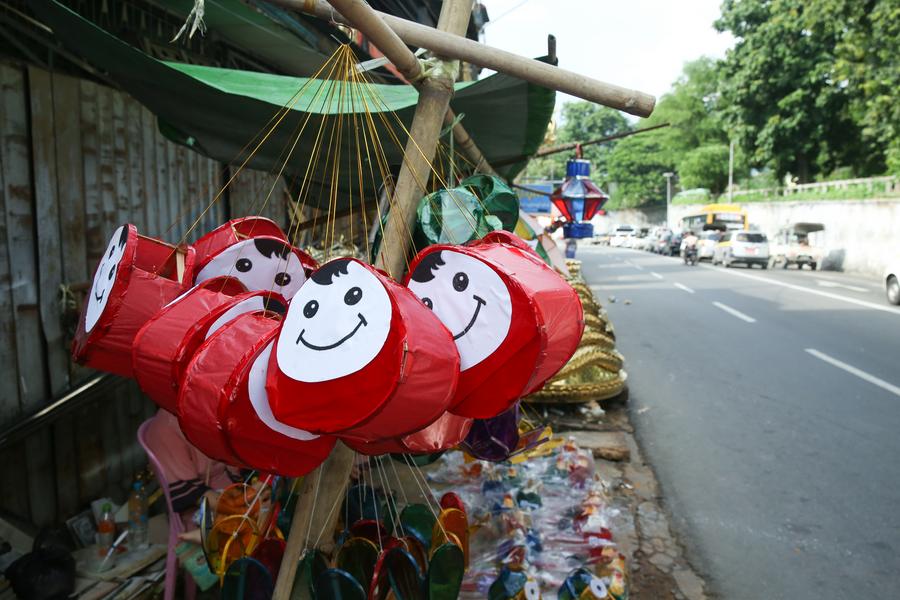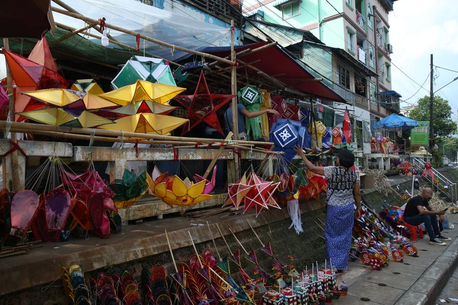 YANGON, Oct. 16 (Xinhua) -- As the full moon of Thadingyut draws near, people across Myanmar are busy preparing for the festival, decorating their homes and shops with colorful lanterns and returning to their native places for family reunion.