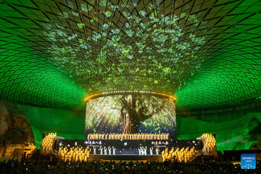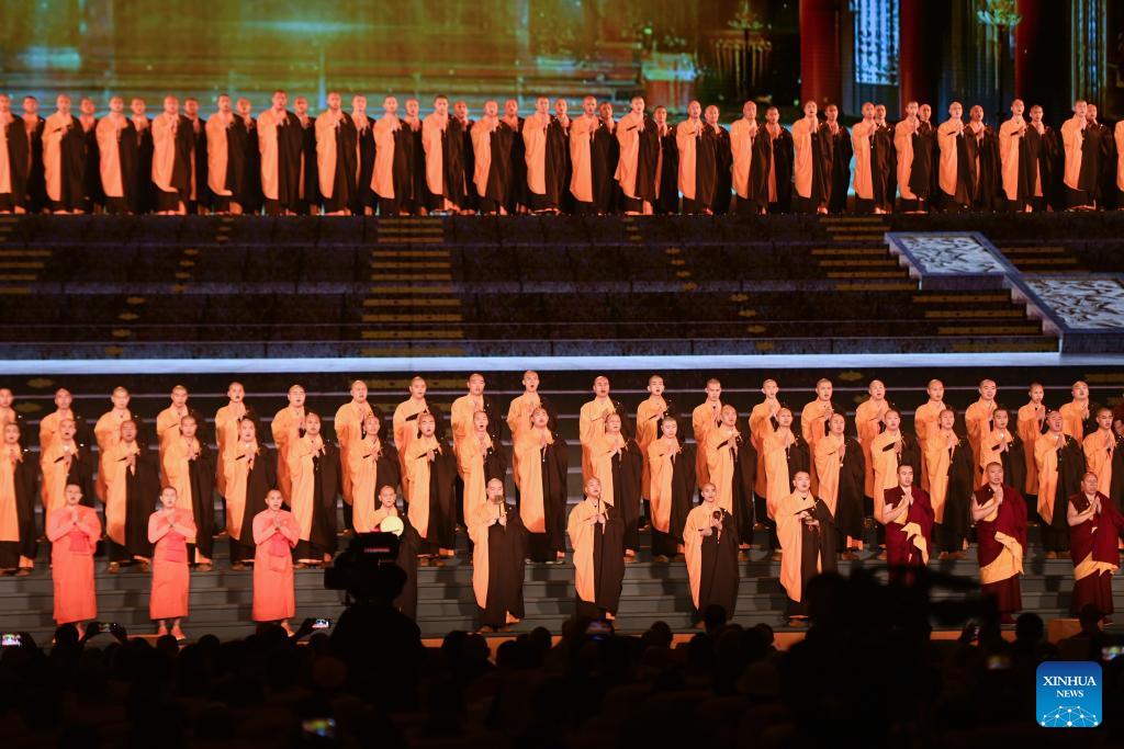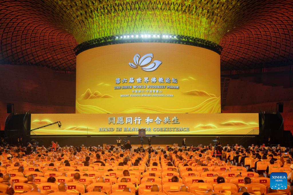This photo taken on Oct. 15, 2024 shows the opening ceremony of the sixth World Buddhist Forum held in Ningbo, east China's Zhejiang Province.