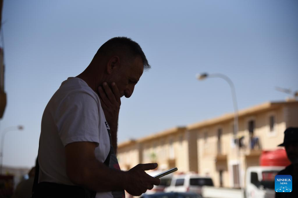 DAMASCUS, Oct. 16 (Xinhua) -- Haidar Abu Ali and his six children began their perilous journey on foot through the streets of Beirut's southern suburb, as cries for help echoed in the aftermath of Israeli airstrikes.