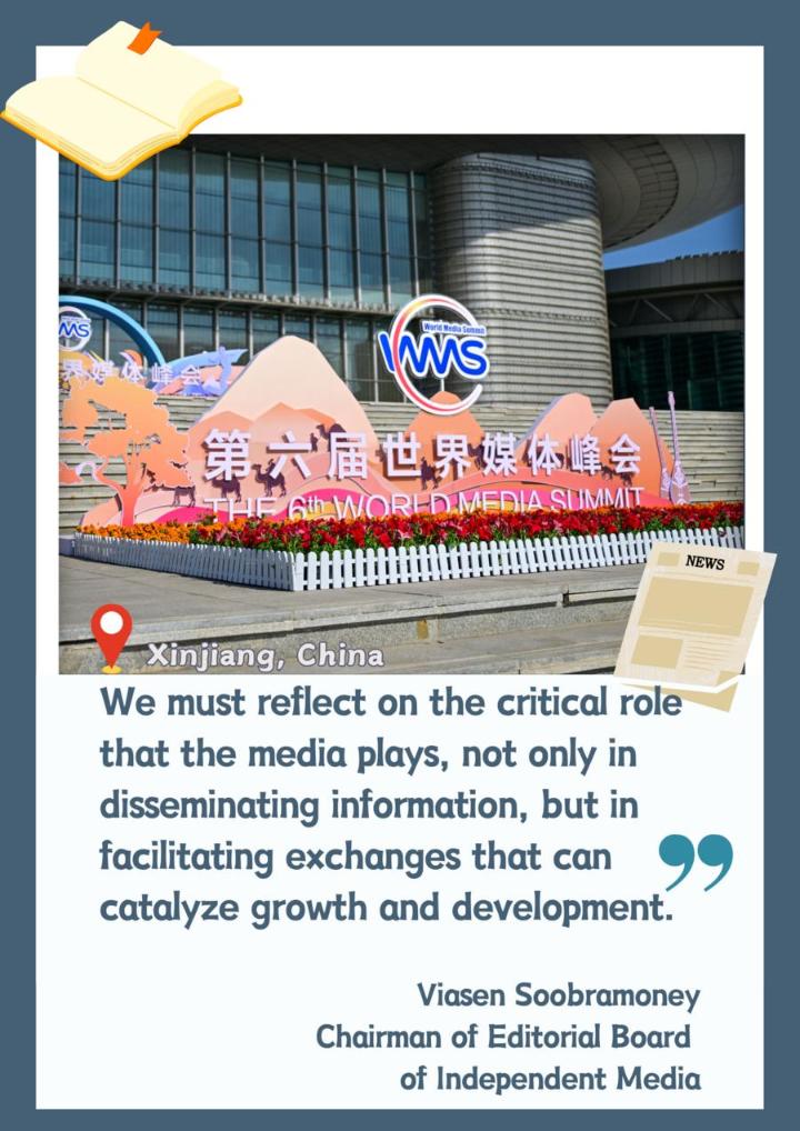 "We must reflect on the critical role that the media plays, not only in disseminating information, but in facilitating exchanges that can catalyze growth and development," said Chairman of Editorial Board of Independent Media Viasen Soobramoney at the sixth World Media Summit.