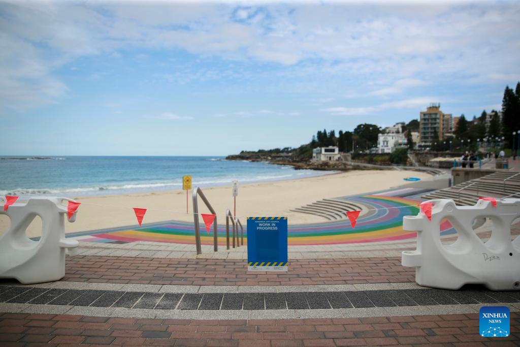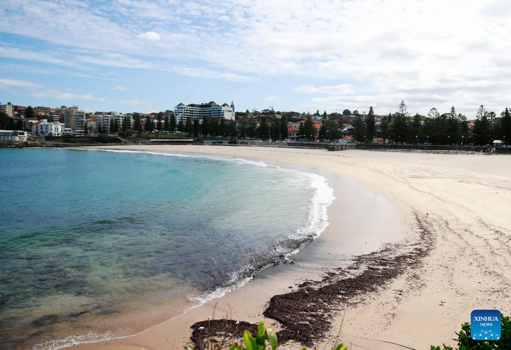 This photo taken on Oct. 16, 2024 shows the closed Coogee Beach in Sydney, Australia. The popular beach in Sydney has been closed to the public after mysterious black balls of debris washed ashore.(Xinhua/Ma Ping)