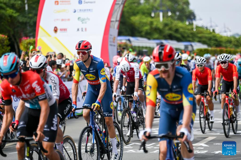 Athletes set off during the 2nd stage of Tour of Guangxi/UCI World Tour in Jingxi, south China's Guangxi Zhuang Autonomous Region, Oct. 16, 2024. (Xinhua/Cao Yiming)