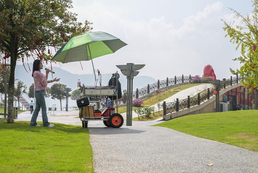 A drone photo taken on Oct. 14, 2024 shows a greenway at the Nanxi riverside wetland park in Yibin City, southwest China's Sichuan Province. (Xinhua/Li He)A drone photo taken on Oct. 13, 2024 shows a view of the confluence of the Minjiang River and Jinsha River in Yibin City, southwest China's Sichuan Province. (Xinhua/Li He)People walk on a greenway at the Nanxi riverside wetland park in Yibin City, southwest China's Sichuan Province, Oct. 14, 2024. (Xinhua/Li He)People visit the Nanxi riverside wetland park in Yibin City, southwest China's Sichuan Province, Oct. 14, 2024. (Xinhua/Li He)A host goes on live broadcast at the Nanxi riverside wetland park in Yibin City, southwest China's Sichuan Province, Oct. 14, 2024. (Xinhua/Li He)■