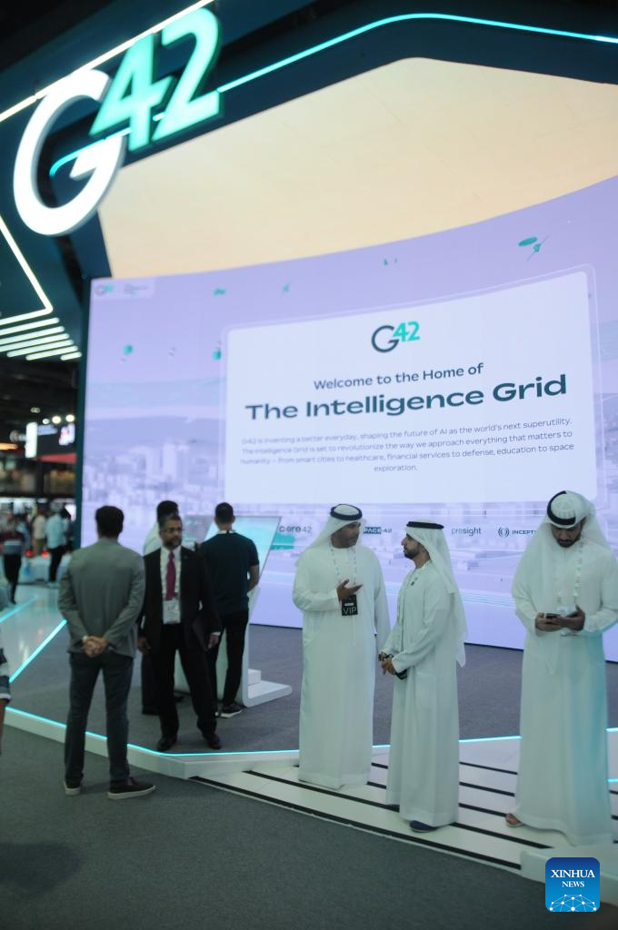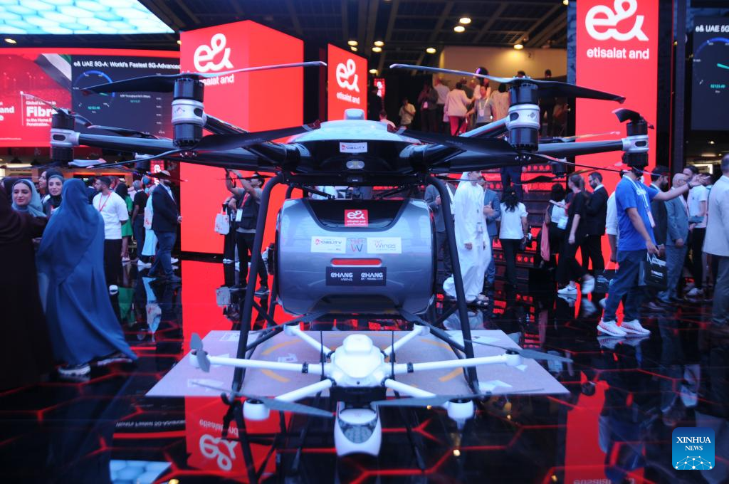People view an exhibit at the Gulf Information Technology Exhibition (GITEX) in Dubai, the United Arab Emirates, on Oct. 17, 2024. (Xinhua/Duan Minfu)