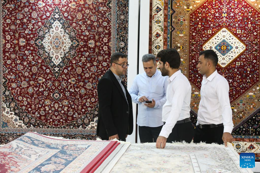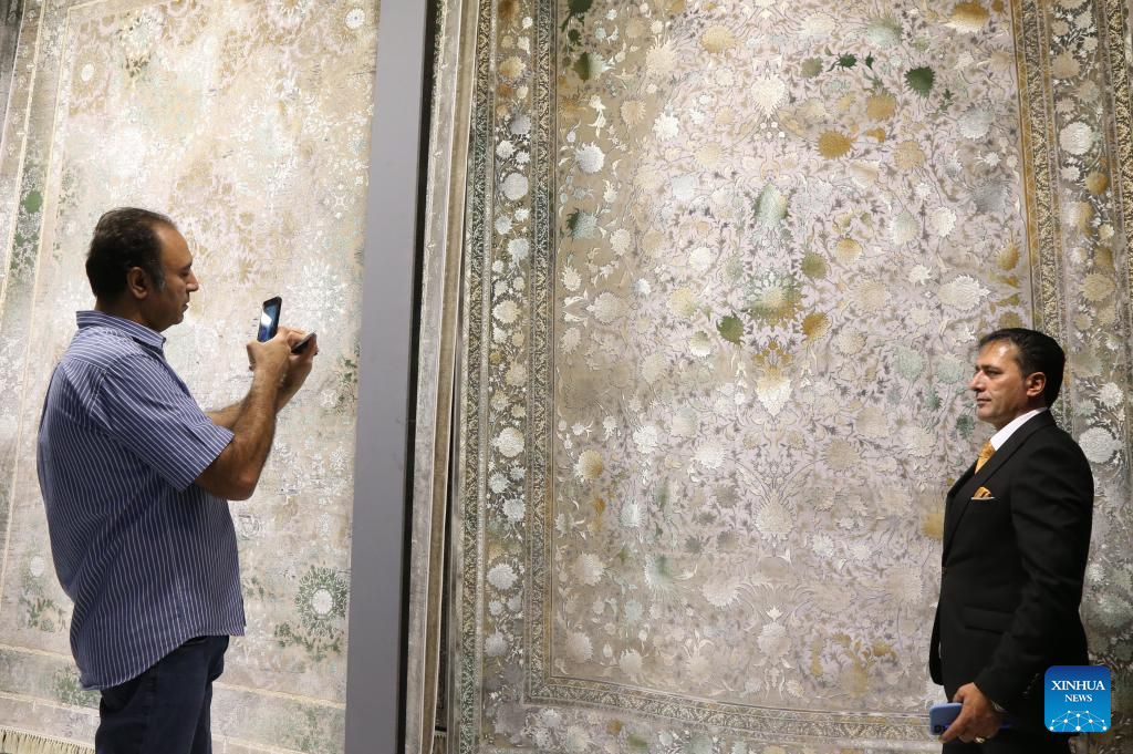 People visit the 16th International Floor Coverings, Moquette, Machine-Made Carpet and Related Industries Exhibition in Tehran, Iran, Oct. 17, 2024. The exhibition was held in Tehran from Monday to Thursday. (Xinhua/Shadati)
