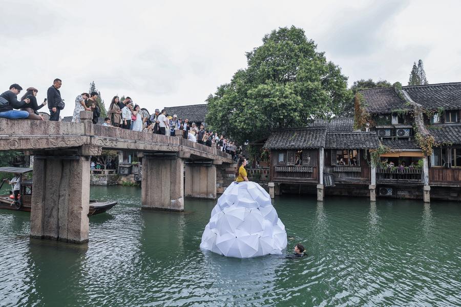 HANGZHOU, Oct. 18 (Xinhua) -- The 11th Wuzhen Theatre Festival raised the curtain Thursday evening in the ancient water town of Wuzhen in Zhejiang Province, east China, bringing together theatrical artists--young and old--and enthusiasts from home and abroad.