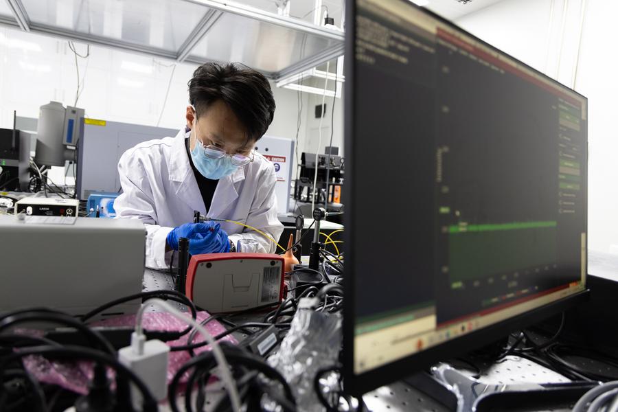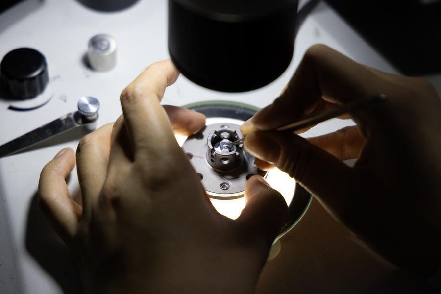 A researcher works at the high-pressure synergetic measurement station of the Synergetic Extreme Condition User Facility (SECUF) in Beijing, capital of China, Oct. 16, 2024. (Xinhua/Jin Liwang)