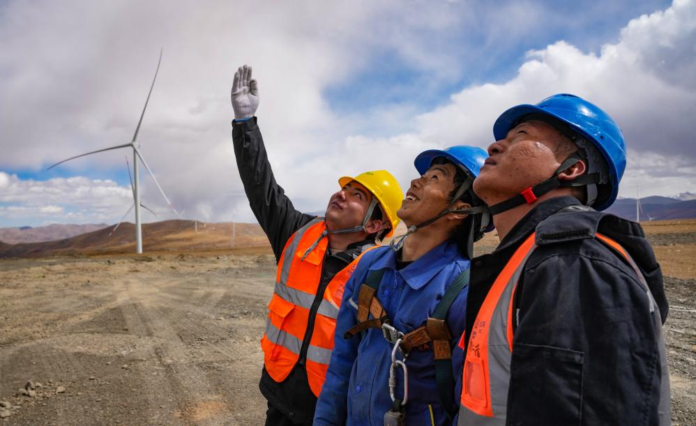 This photo shows wind turbines in Sa'gya County of Xigaze City, southwest China's Xizang Autonomous Region, Oct. 17, 2024. (Xinhua/Jigme Dorje)This photo shows wind turbines in Sa'gya County of Xigaze City, southwest China's Xizang Autonomous Region, Oct. 17, 2024. (Xinhua/Jigme Dorje)This photo shows wind turbines in Sa'gya County of Xigaze City, southwest China's Xizang Autonomous Region, Oct. 17, 2024. (Xinhua/Jigme Dorje)An aerial drone photo shows the Sa'gya 300 MW power station in Sa'gya County of Xigaze City, southwest China's Xizang Autonomous Region, Oct. 17, 2024. (Xinhua/Jigme Dorje)An aerial drone photo shows wind turbines in Sa'gya County of Xigaze City, southwest China's Xizang Autonomous Region, Oct. 17, 2024. (Xinhua/Jigme Dorje)This photo shows animals and a wind turbine in Sa'gya County of Xigaze City, southwest China's Xizang Autonomous Region, Oct. 17, 2024. (Xinhua/Jigme Dorje)Staff workers look at a wind turbine in Sa'gya County of Xigaze City, southwest China's Xizang Autonomous Region, Oct. 17, 2024. (Xinhua/Jigme Dorje)Staff workers examine 35 kV switchgear in Sa'gya County of Xigaze City, southwest China's Xizang Autonomous Region, Oct. 17, 2024. (Xinhua/Jigme Dorje)■