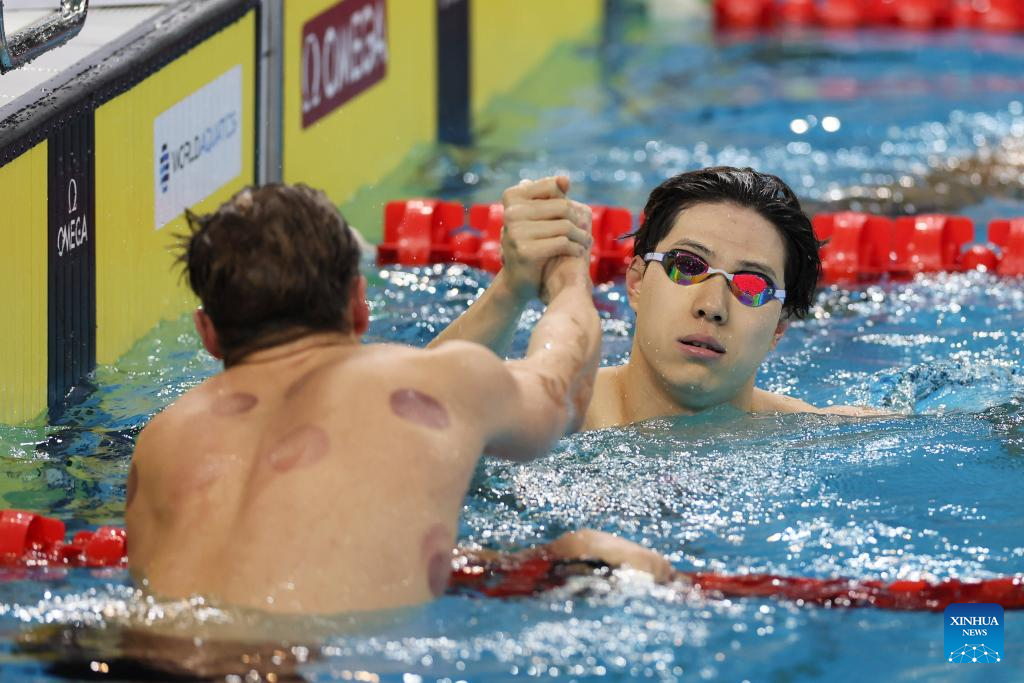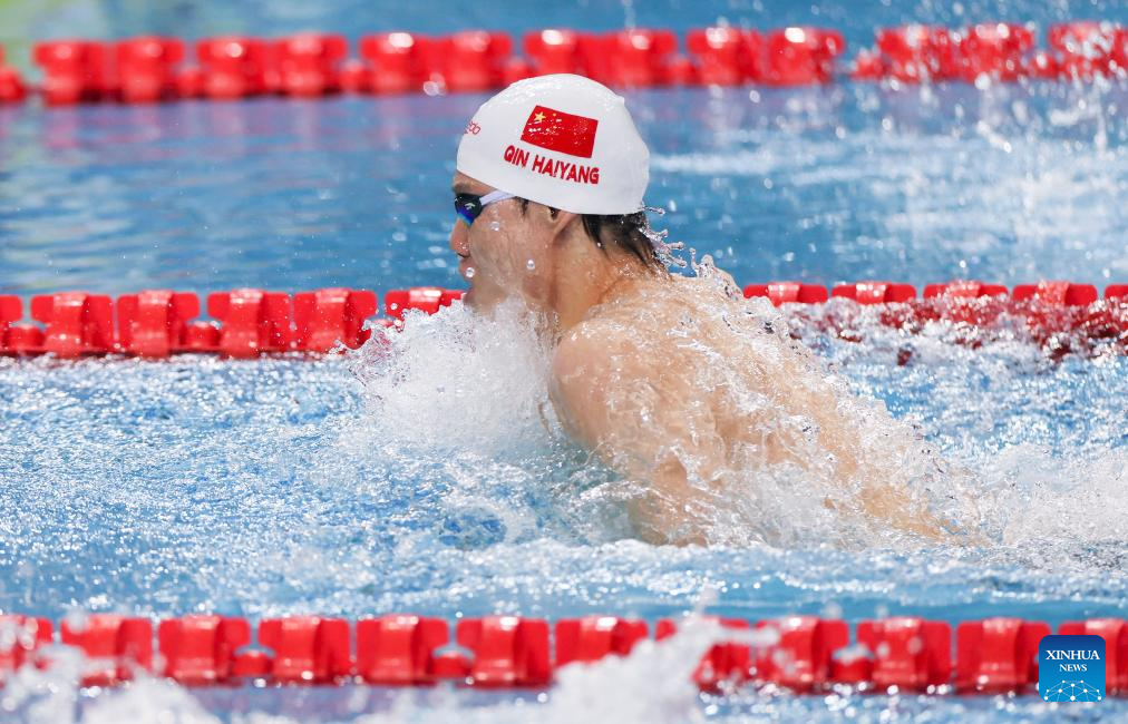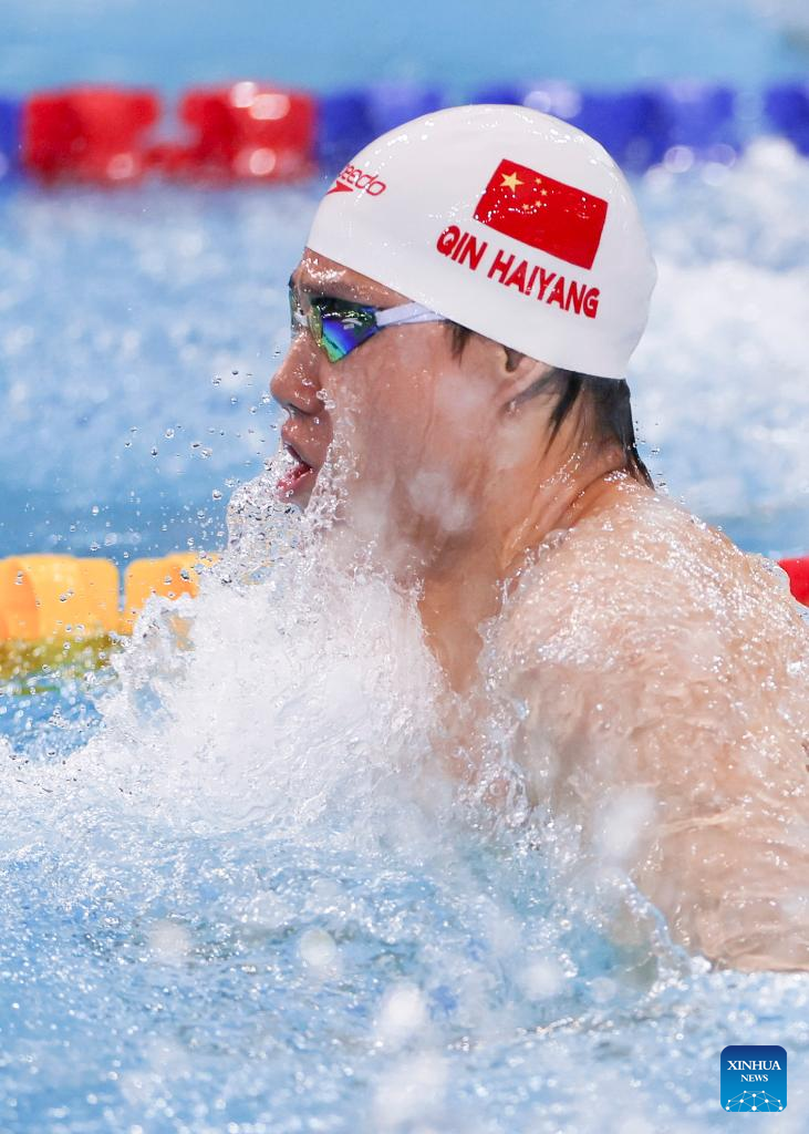 SHANGHAI, Oct. 19 (Xinhua) -- China's swimming sensation Qin Haiyang secured his second gold at the World Aquatics Swimming World Cup in Shanghai, clocking a new Asian record of 25.38 seconds in the men's 50m breaststroke on Saturday.