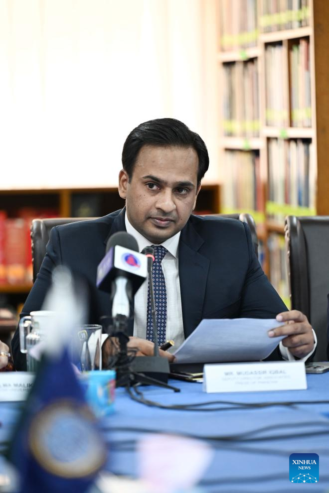 The symposium held on Friday drew about 100 participants, including diplomats, scholars, and media representatives. It was co-convened by Xinhua News Agency and the Institute of Strategic Studies Islamabad (ISSI), an Islamabad-based think tank. (Xinhua/Ahmad Kamal)