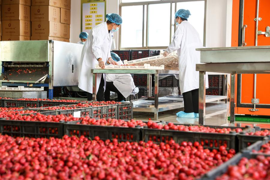 In Hawthorn Town, an agricultural park and tourism resort in Tongwei, water facilities including a reservoir were built to divert water from the Taohe River. Locals are employed to pick hawthorns during the current harvest season and tourists can experience picking and farm life.