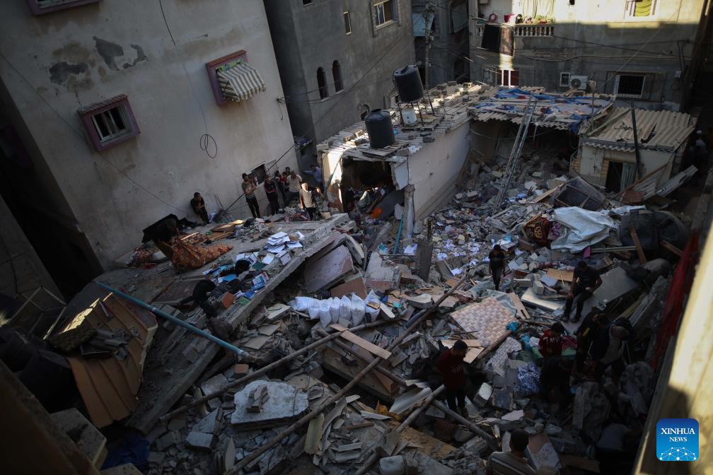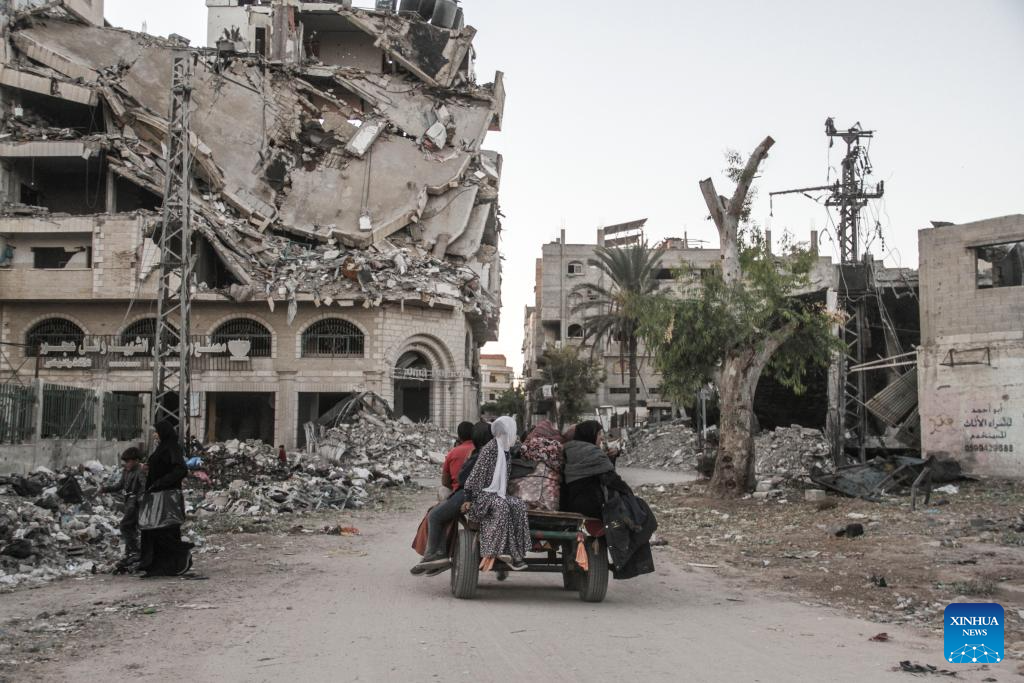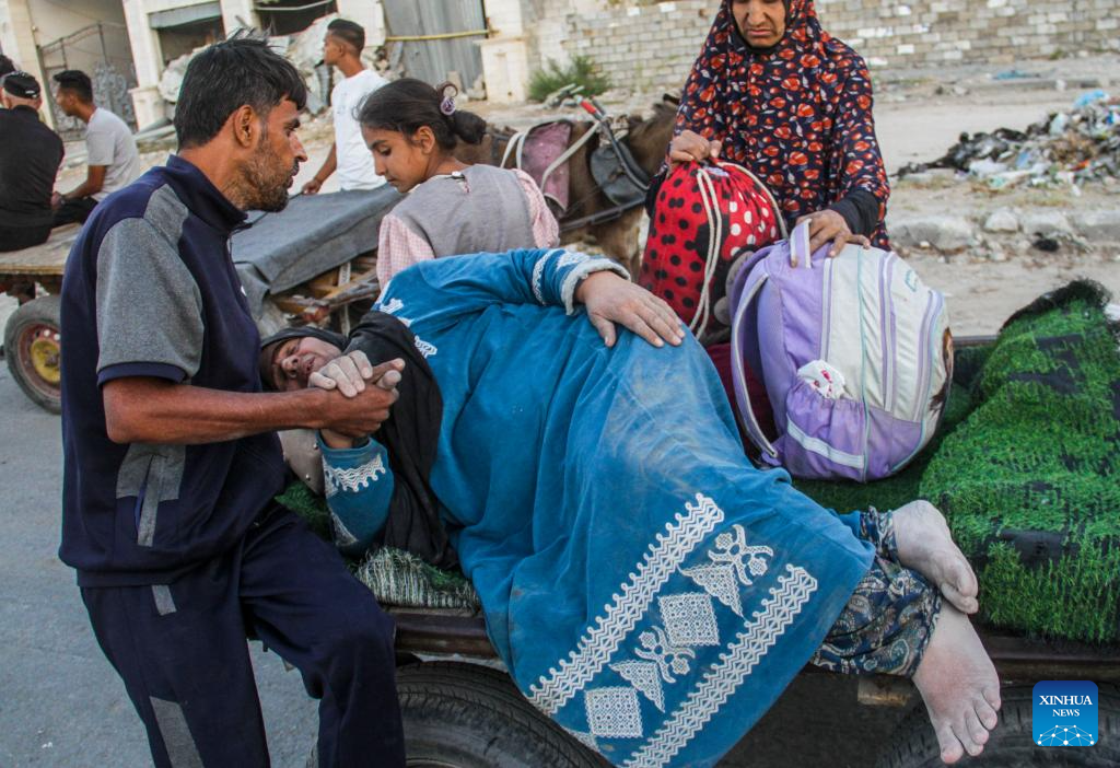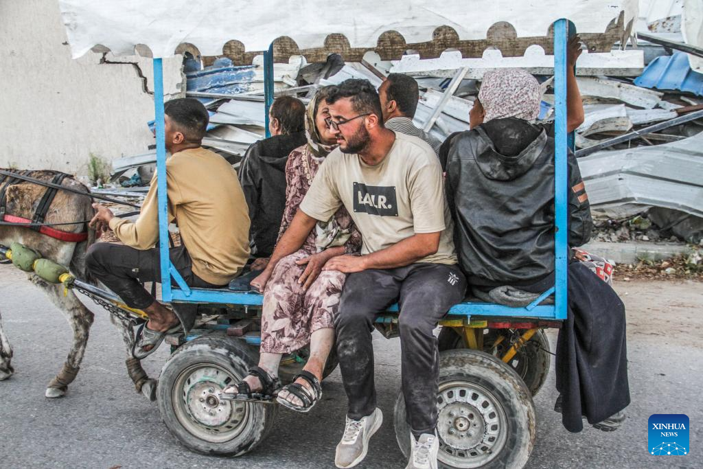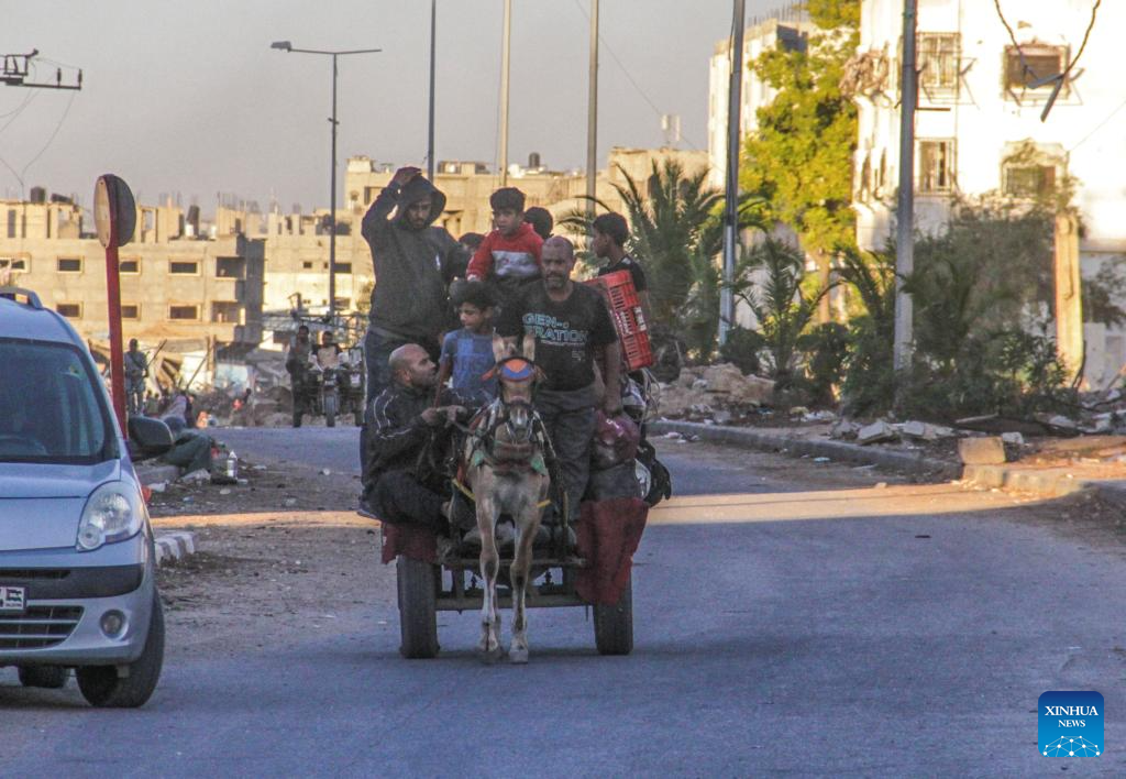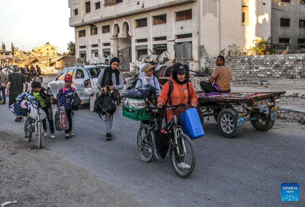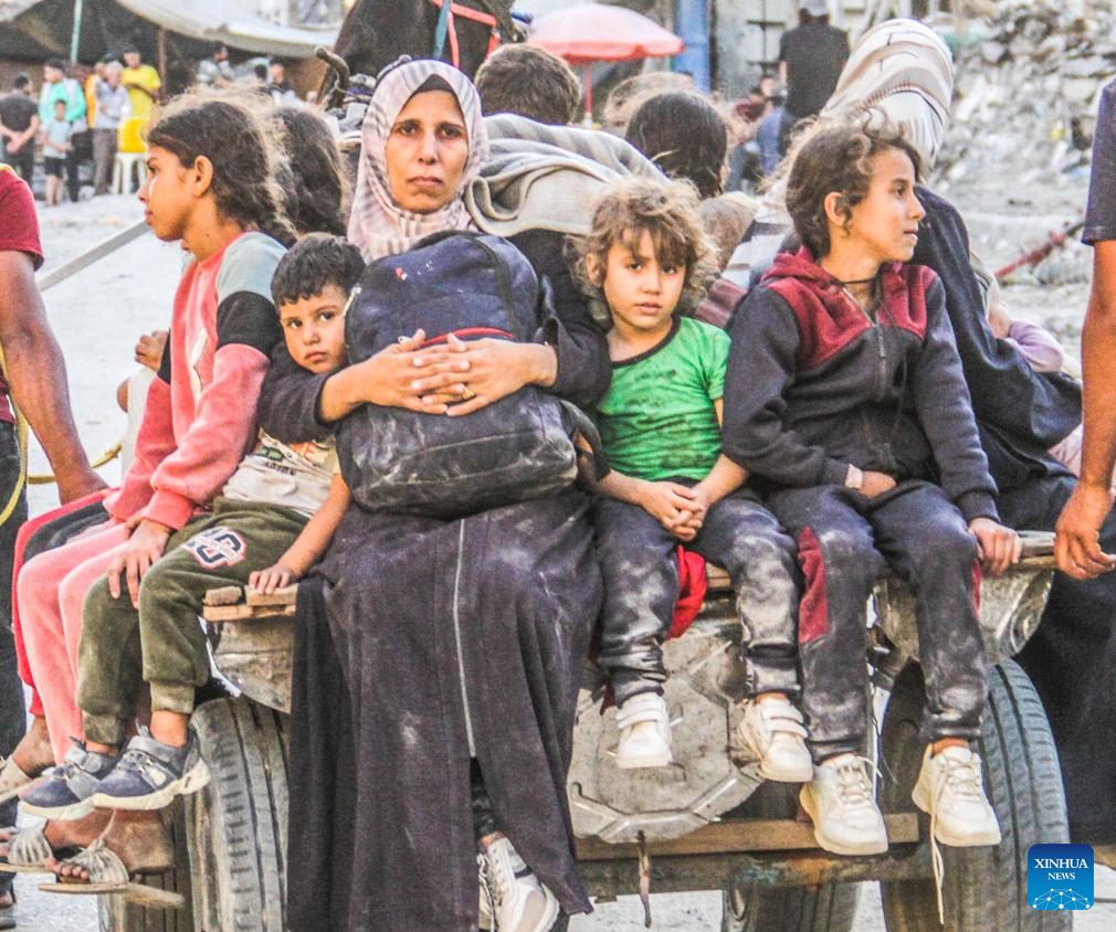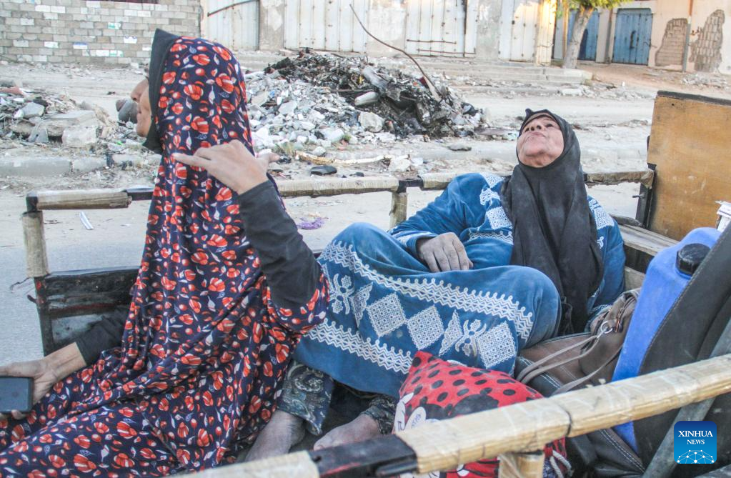 Also on Saturday, Philippe Lazzarini, commissioner-general of the UN Relief and Works Agency for Palestine Refugees in the Near East (UNRWA), said on social media platform X that another 20,000 people were forced to flee the Jabalia refugee camp in northern Gaza on Friday as the war across the Strip continues unabated. (Photo by Mahmoud Zaki/Xinhua)