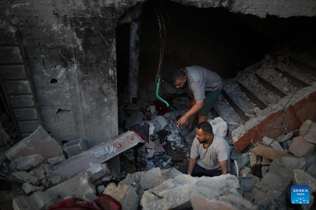 Palestinians check a destroyed house after Israeli attacks in the Al-Maghazi refugee camp in central Gaza Strip, Oct. 19, 2024.