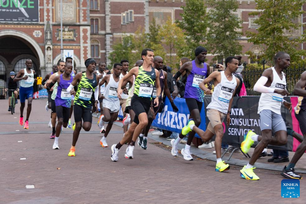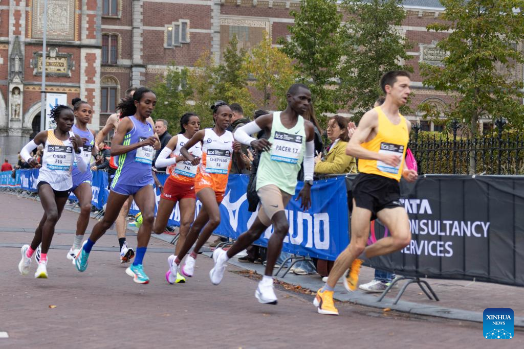 Runners compete during the 48th edition of the Amsterdam Marathon in Amsterdam, the Netherlands, Oct. 20, 2024. (Photo by Sylvia Lederer/Xinhua)