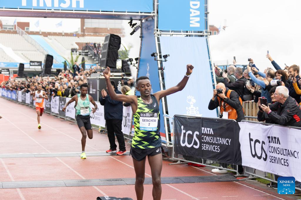 THE HAGUE, Oct. 20 (Xinhua) -- Ethiopian athletes Tsegaye Getachew and Yalemzerf Yehualaw won the Amsterdam Marathon for men and women events respectively on Sunday.