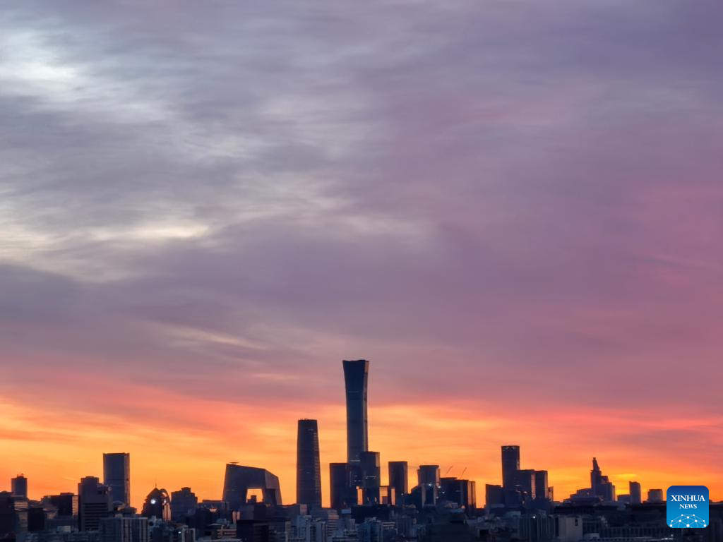 This photo taken with a mobile phone shows the skyline during early morning in Beijing, capital of China, Oct. 19, 2024. (Xinhua/Tu Ming)