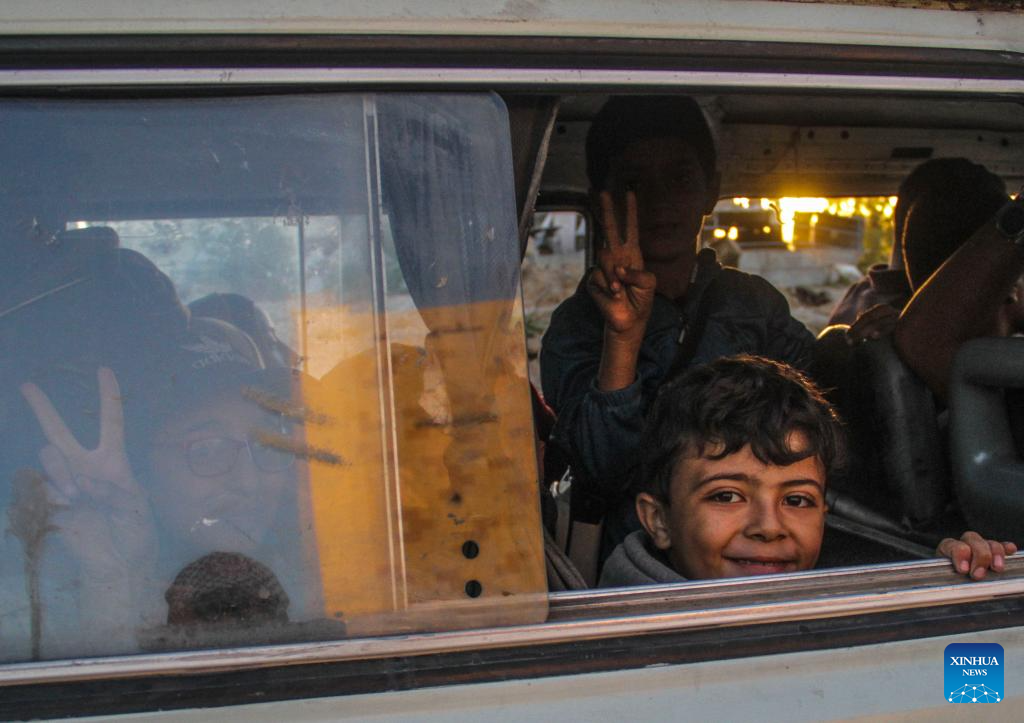 People flee from Jabalia, northern Gaza Strip, after the Israeli army asked them to leave a school where they had sought refuge, on Oct. 19, 2024. (Photo by Mahmoud Zaki/Xinhua)