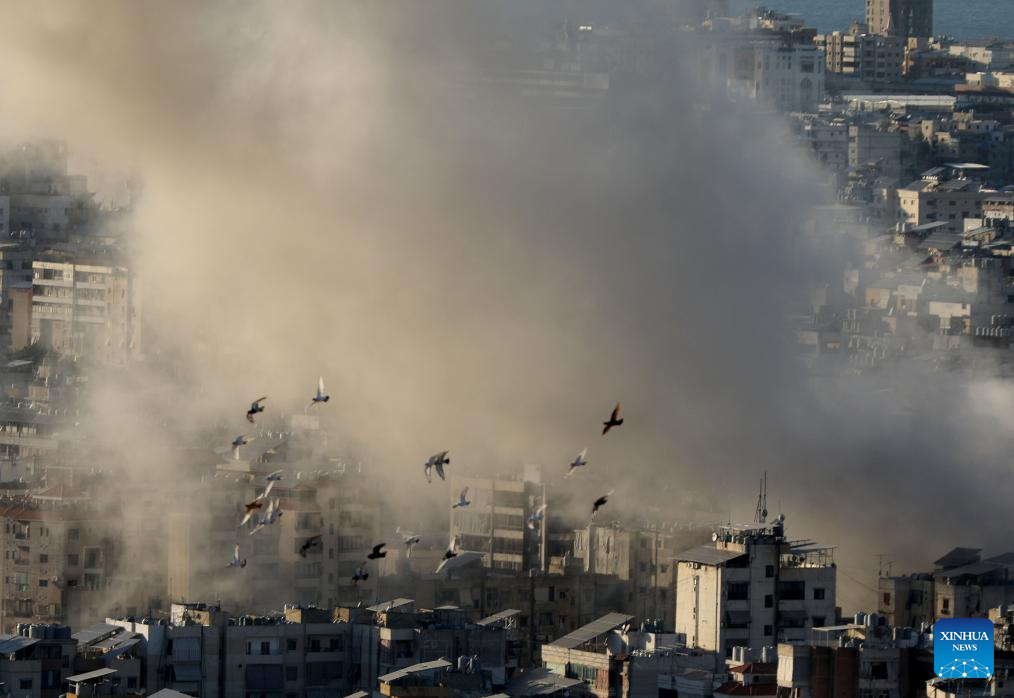 Smoke billows following Israeli airstrikes in the southern suburb of Beirut, Lebanon, Oct. 19, 2024. (Xinhua/Bilal Jawich)