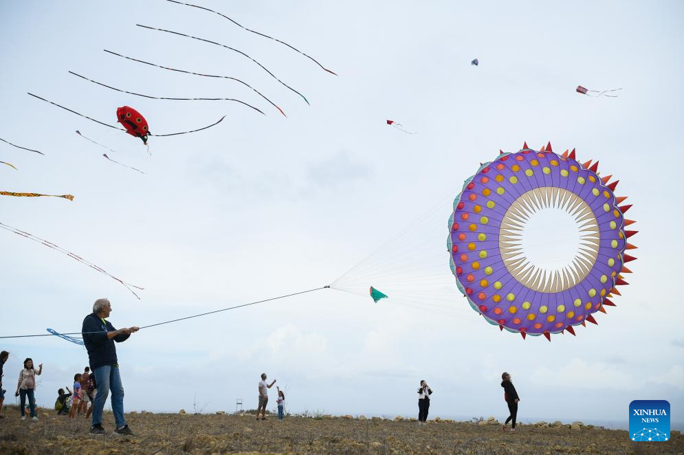 People fly kites during the 7th edition of Gozo International Kite and Wind Festival in the village of Gharb on the island of Gozo, Malta, on Oct. 19, 2024.