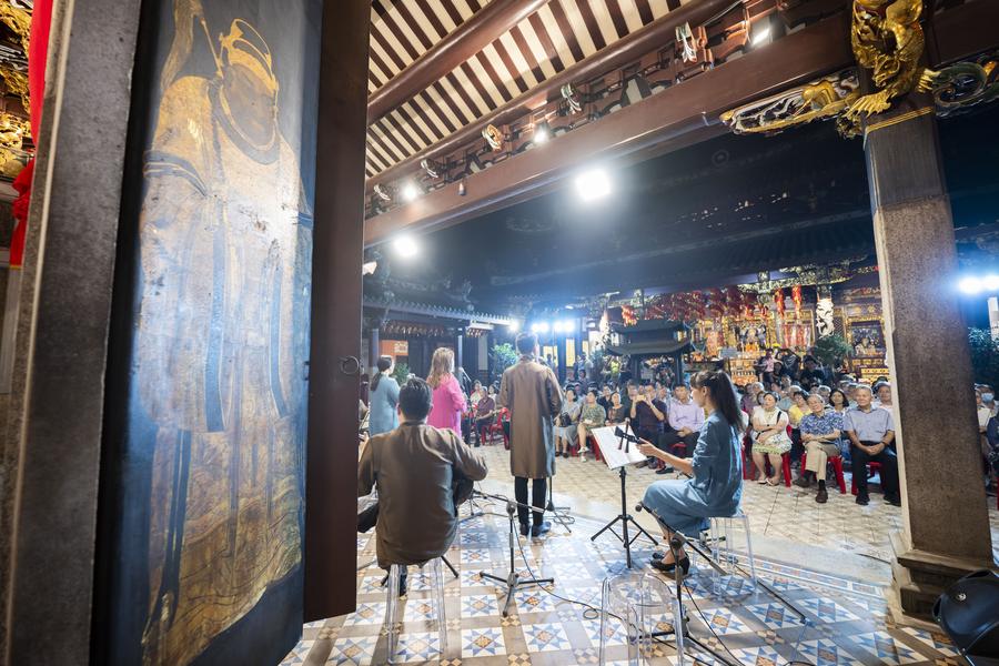 People enjoy a Nanyin concert performed by Siong Leng Musical Association at the Thian Hock Keng Temple, Singapore, Oct. 21, 2024. (Then Chih Wey/Xinhua)People enjoy a Nanyin concert performed by Siong Leng Musical Association at the Thian Hock Keng Temple, Singapore, Oct. 21, 2024. (Then Chih Wey/Xinhua)People enjoy a Nanyin concert performed by Siong Leng Musical Association at the Thian Hock Keng Temple, Singapore, Oct. 21, 2024. (Then Chih Wey/Xinhua)■