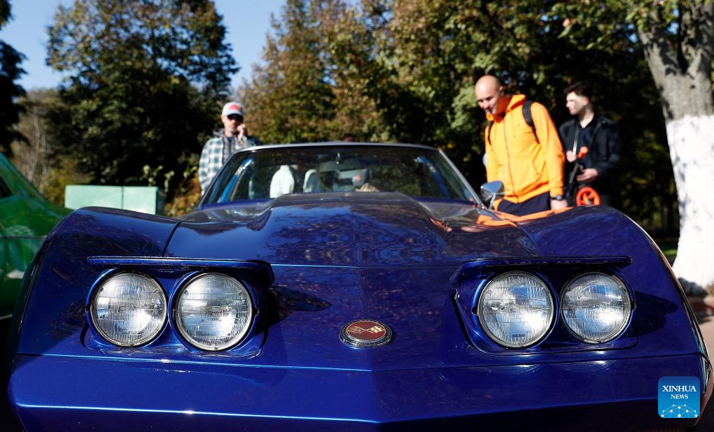 People view a Chevrolet Corvette vintage car during the Autumn Retro Parade in Bucharest, Romania, Oct. 20, 2024. (Photo by Cristian Cristel/Xinhua)
