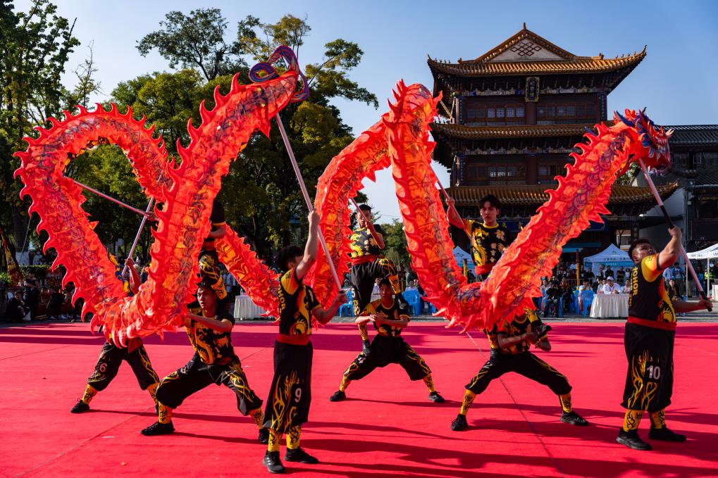 KUNMING, Oct. 23 (Xinhua) -- The 2nd Traditional Sports International Festival was held in Kunming, capital of southwest China's Yunnan Province from Oct. 17 to Oct. 21, 2024. The festival includes Wushu, Health Qigong, Go (Weiqi) and Dragon and Lion Dance, attracting contestants from 27 countries and regions. A team from Malaysia Johor Loong & Lion Dance Sport Association led by Chan Hong Kin won two gold medals in Dragon Dance Category.