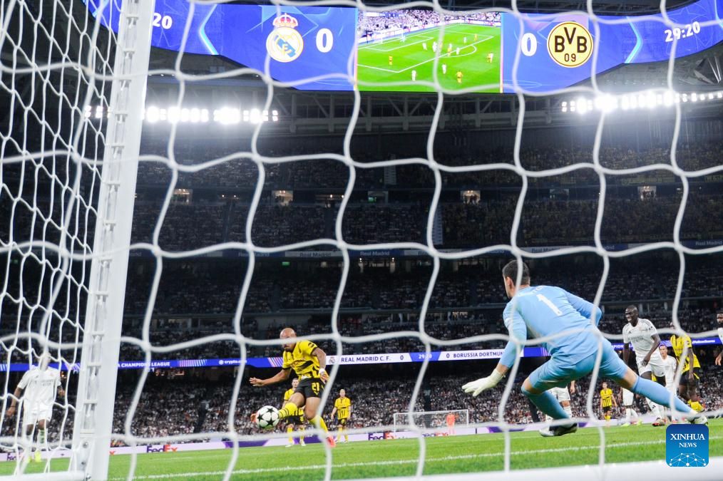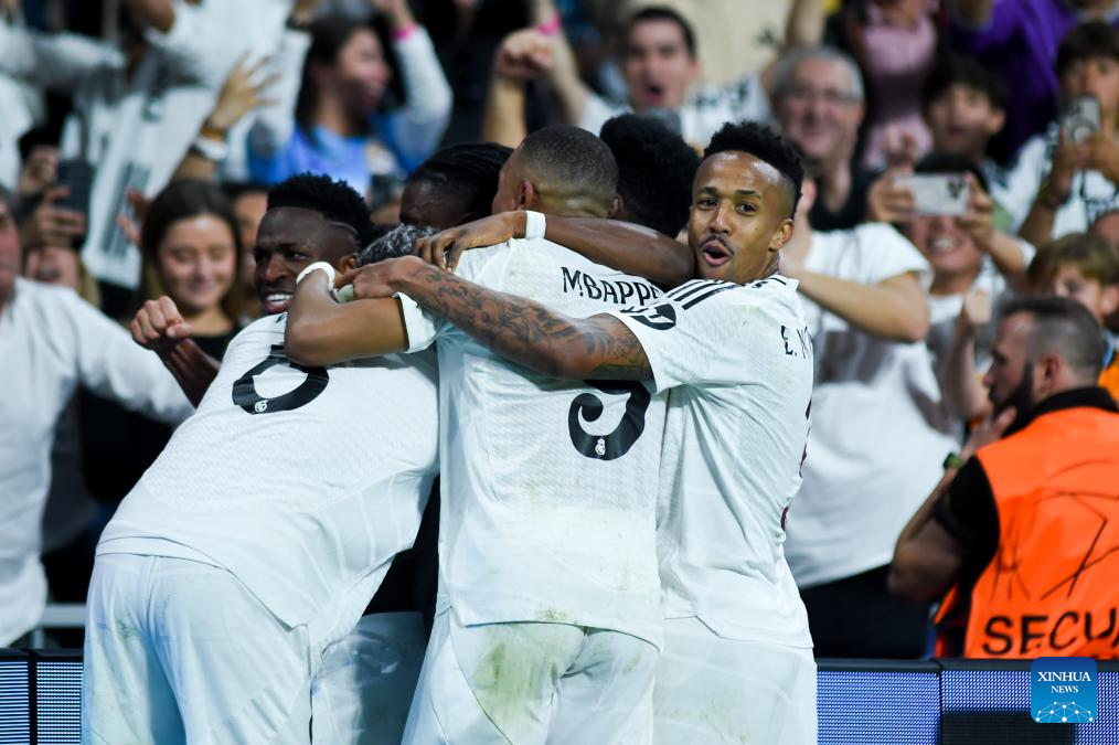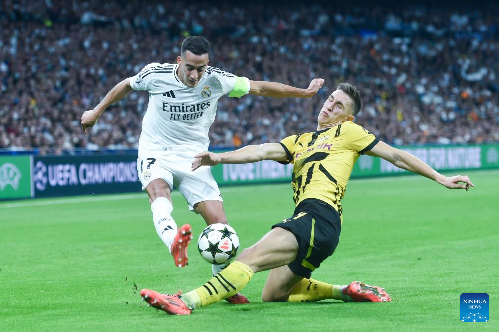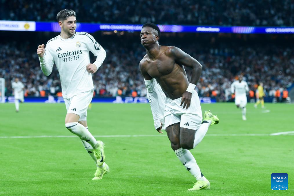 MADRID, Oct. 22 (Xinhua) -- Real Madrid came back from 2-0 down at home to Borussia Dortmund to win 5-2, while Girona beat Slovan Bratislava 2-0 to claim their first-ever points in the competition in Spain on Tuesday.