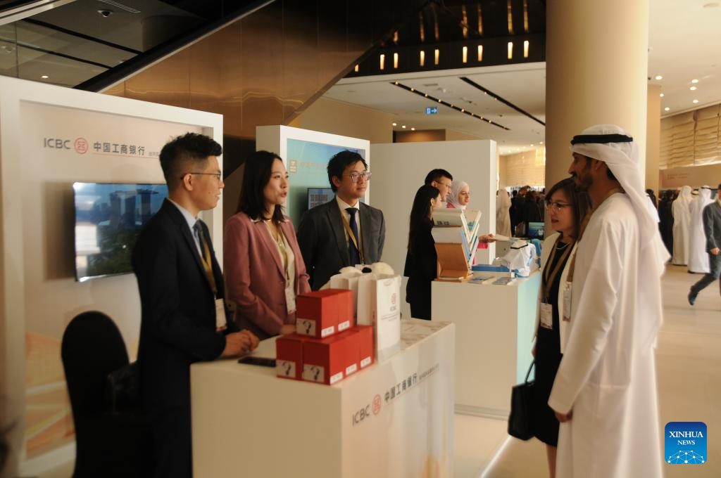 Guests visit the pavilion of Industrial and Commercial Bank of China (ICBC) during the first Dubai Forum in Dubai, the United Arab Emirates (UAE), Oct. 23, 2024.