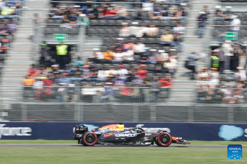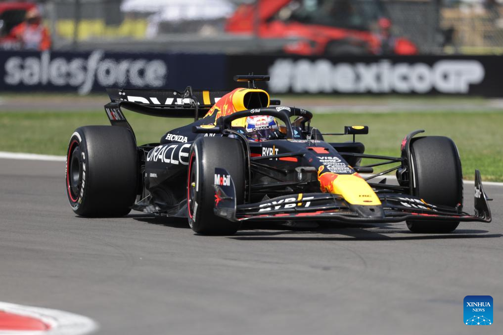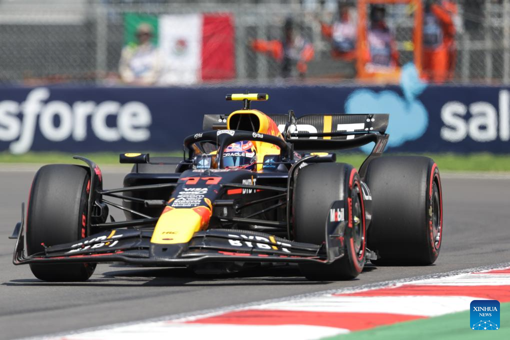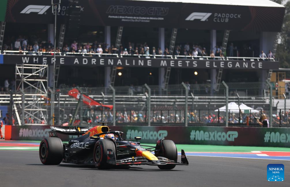 Red Bull's Dutch driver Max Verstappen competes during a practice session of the 2024 Formula One Mexico City Grand Prix at the Hermanos Rodriguez Circuit in Mexico City, Mexico, Oct. 25, 2024. (Xinhua/Li Mengxin)