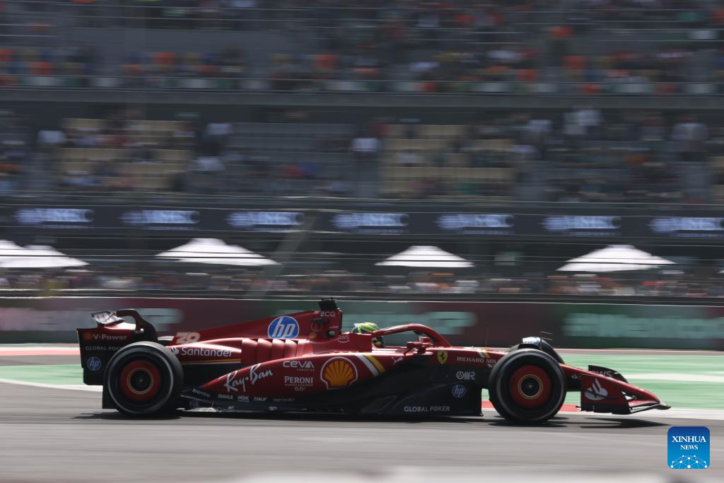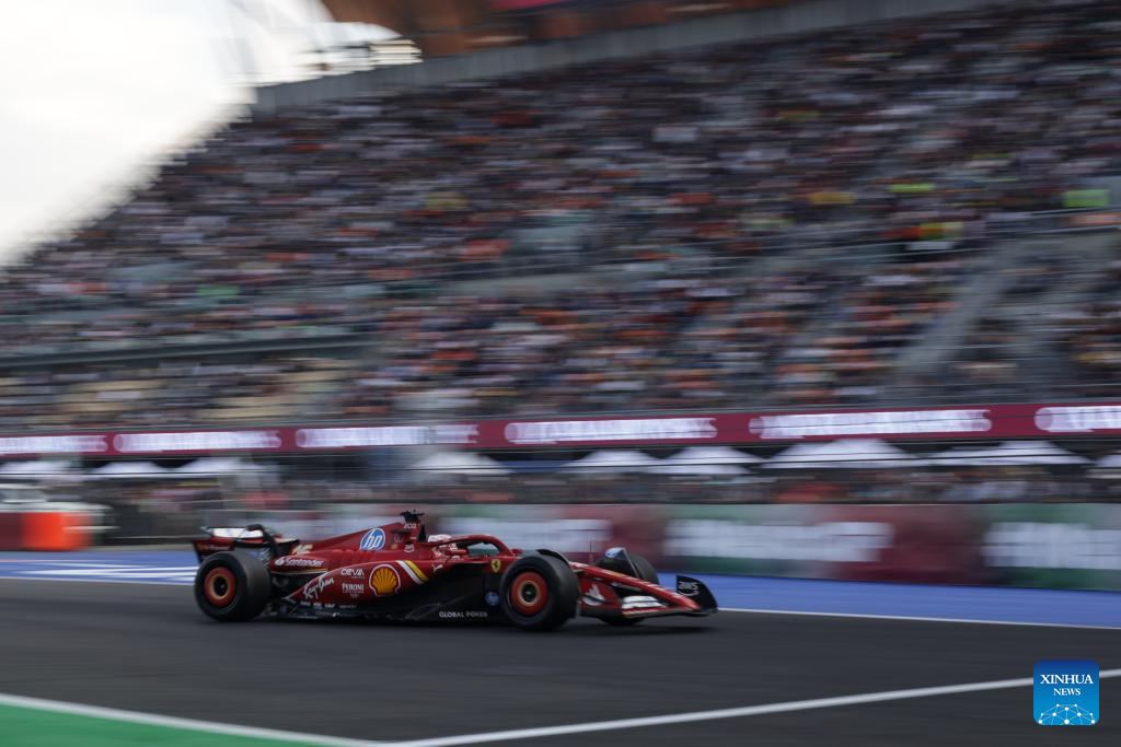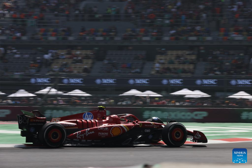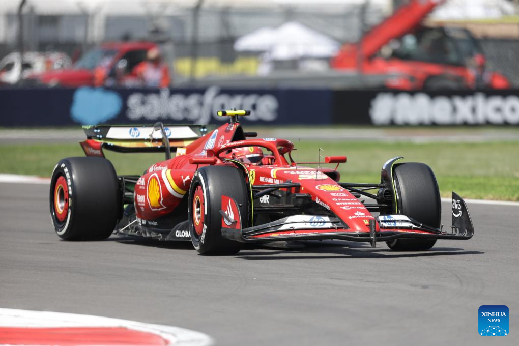 Ferrari's Spanish driver Carlos Sainz competes during a practice session of the 2024 Formula One Mexico City Grand Prix at the Hermanos Rodriguez Circuit in Mexico City, Mexico, Oct. 25, 2024. (Xinhua/Li Mengxin)