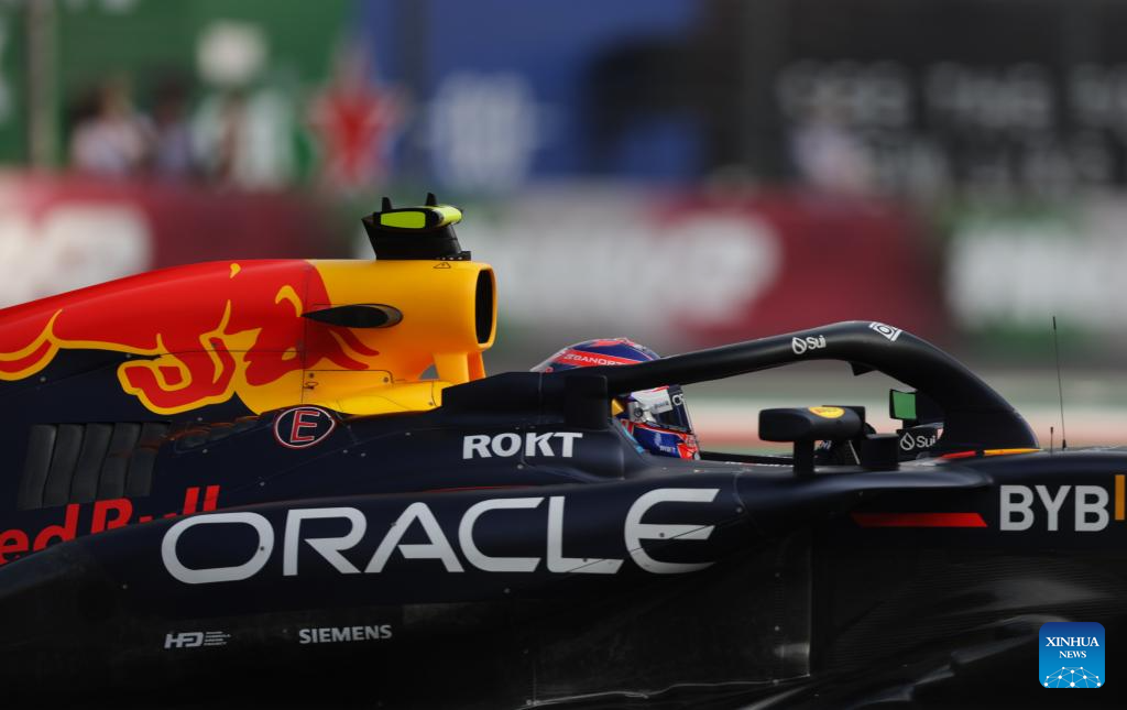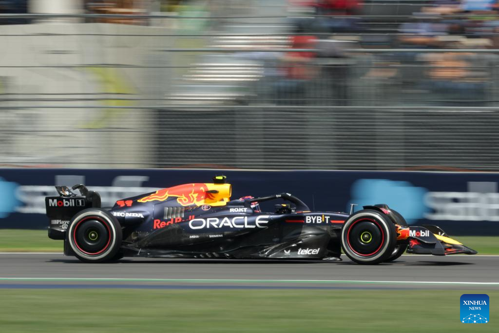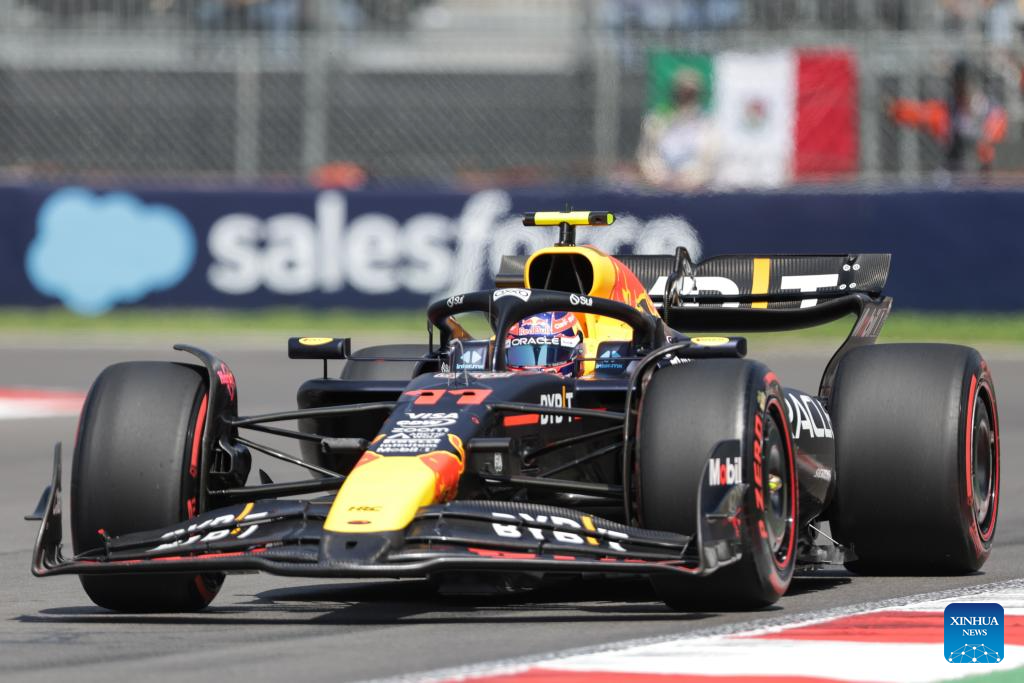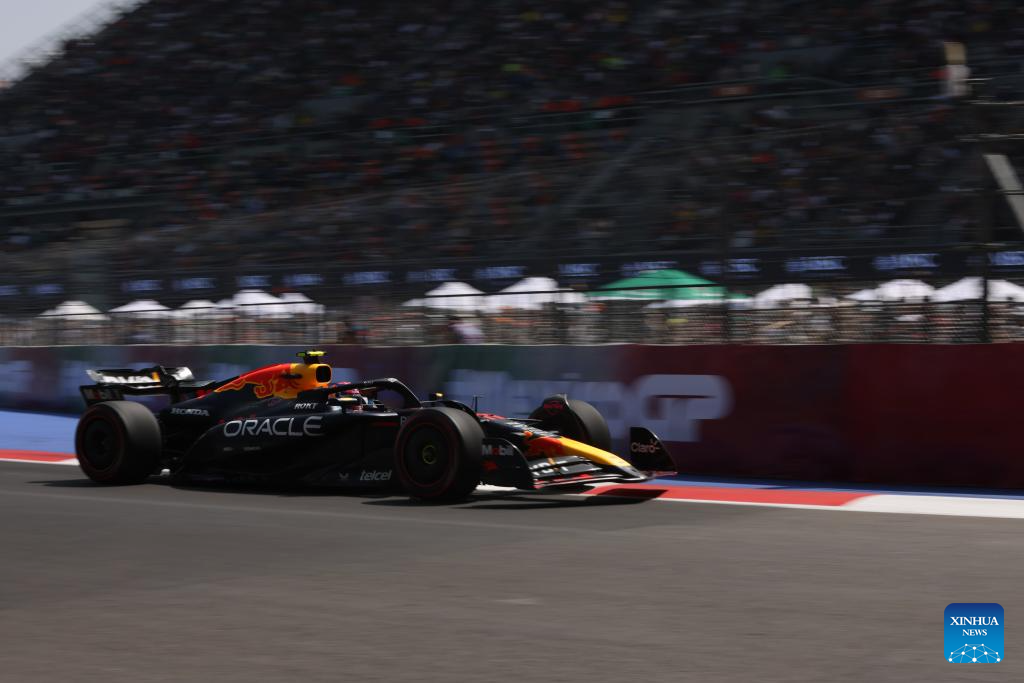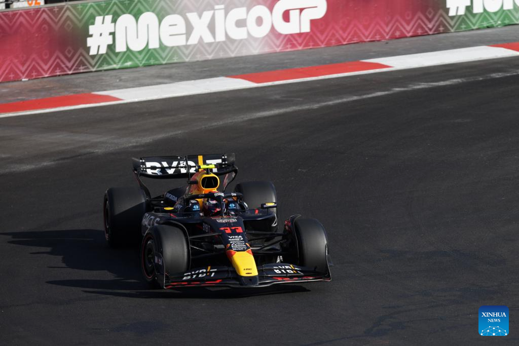 Red Bull's Mexican driver Sergio Perez competes during a practice session of the 2024 Formula One Mexico City Grand Prix at the Hermanos Rodriguez Circuit in Mexico City, Mexico, Oct. 25, 2024. (Xinhua/Li Mengxin)