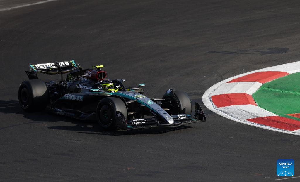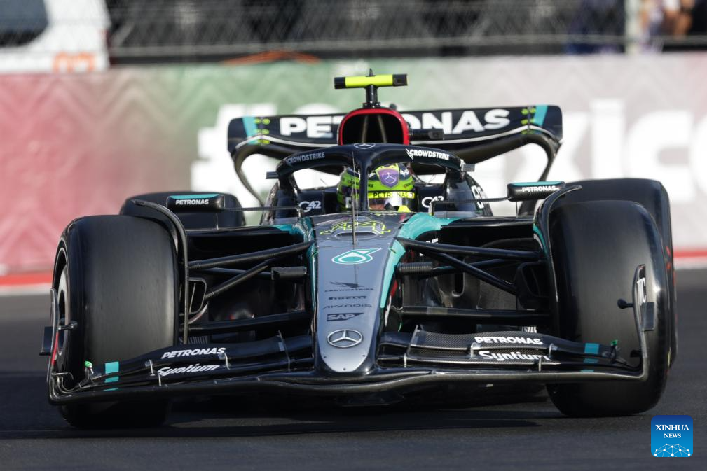 Mercedes' British driver Lewis Hamilton competes during a practice session of the 2024 Formula One Mexico City Grand Prix at the Hermanos Rodriguez Circuit in Mexico City, Mexico, Oct. 25, 2024. (Photo by Francisco Canedo/Xinhua)
