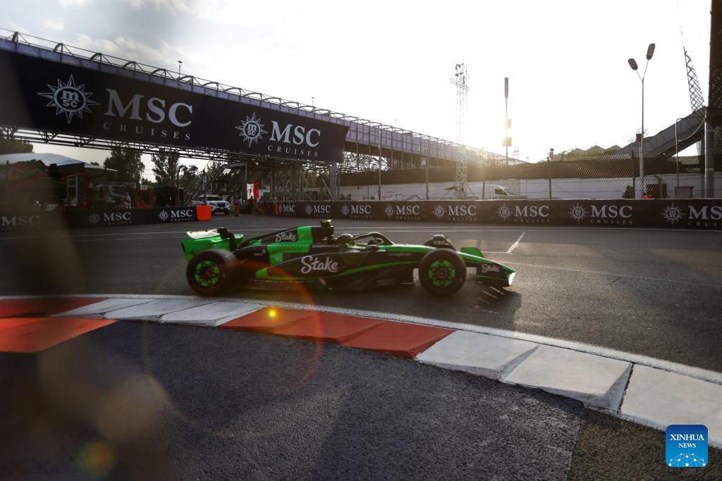 Haas' British driver Oliver Bearman competes during a practice session of the 2024 Formula One Mexico City Grand Prix at the Hermanos Rodriguez Circuit in Mexico City, Mexico, Oct. 25, 2024. (Xinhua/Li Mengxin)