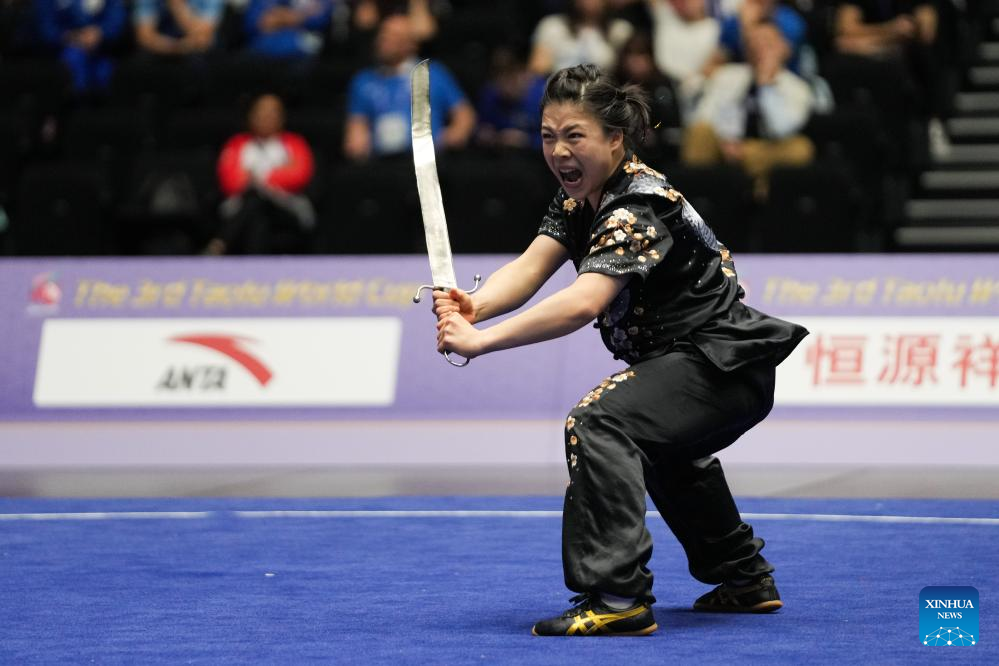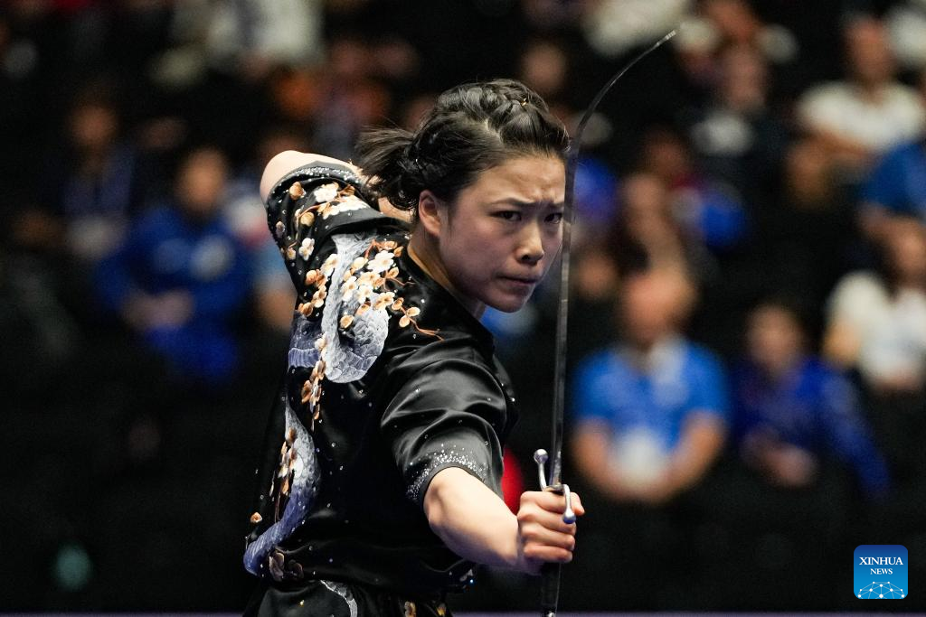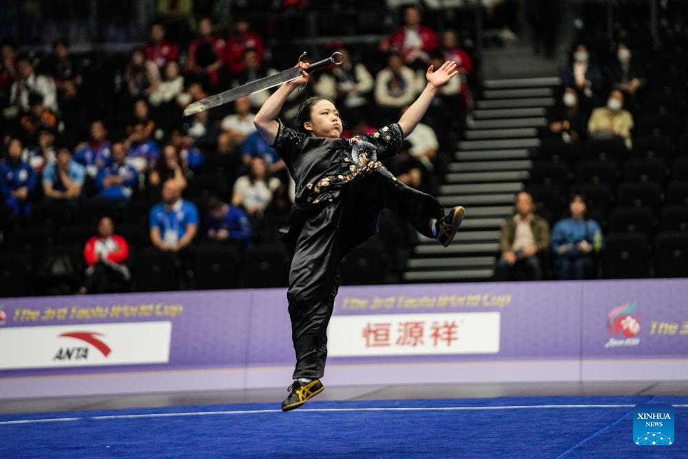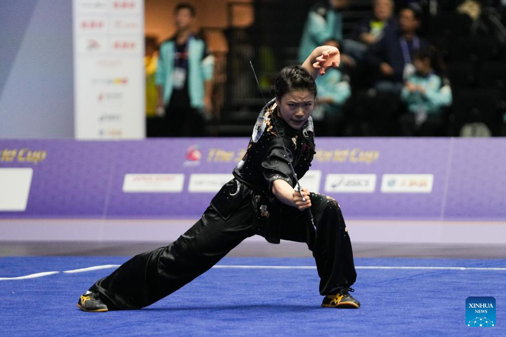 Wu Jianing of China competes during the Women's Nandao competition of the 3rd Taolu World Cup held in Yokohama, Japan, on Oct. 26, 2024. (Xinhua/Zhang Xiaoyu)