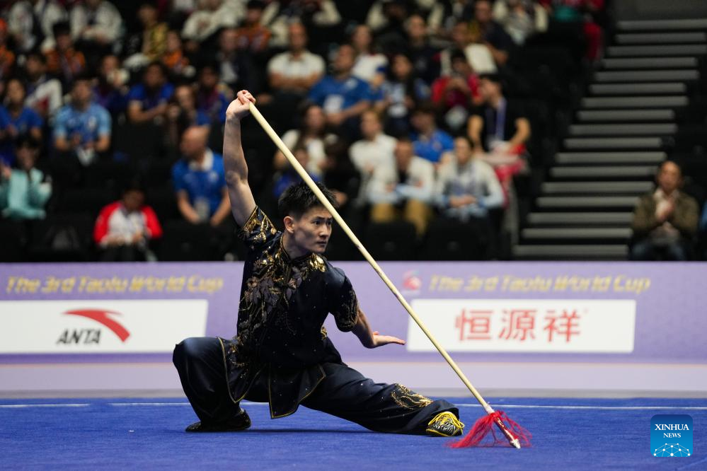 Zhang Qingchun of China competes during the Men's Qiangshu competition of the 3rd Taolu World Cup held in Yokohama, Japan, on Oct. 26, 2024. (Xinhua/Zhang Xiaoyu)