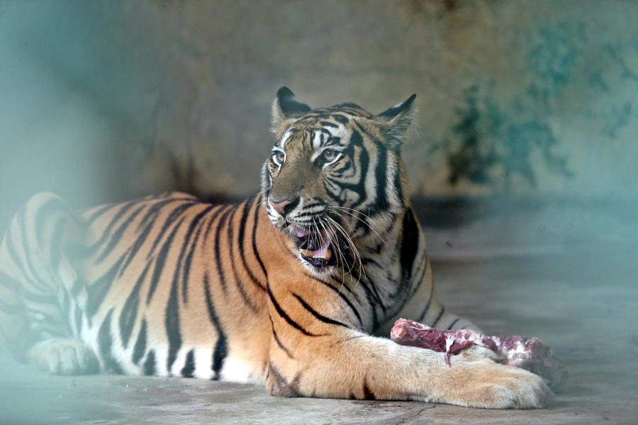 A tiger is seen in the Bangladesh National Zoo in the Mirpur section of Dhaka, Bangladesh, Oct. 24, 2024. (Xinhua)A peacock is seen in the Bangladesh National Zoo in the Mirpur section of Dhaka, Bangladesh, Oct. 24, 2024. (Xinhua)Photo taken on Oct. 24, 2024 shows zebras in the Bangladesh National Zoo in the Mirpur section of Dhaka, Bangladesh. (Xinhua)A monkey is seen in the Bangladesh National Zoo in the Mirpur section of Dhaka, Bangladesh, Oct. 24, 2024. (Xinhua)Photo taken on Oct. 24, 2024 shows animals in the Bangladesh National Zoo in the Mirpur section of Dhaka, Bangladesh. (Xinhua) ■