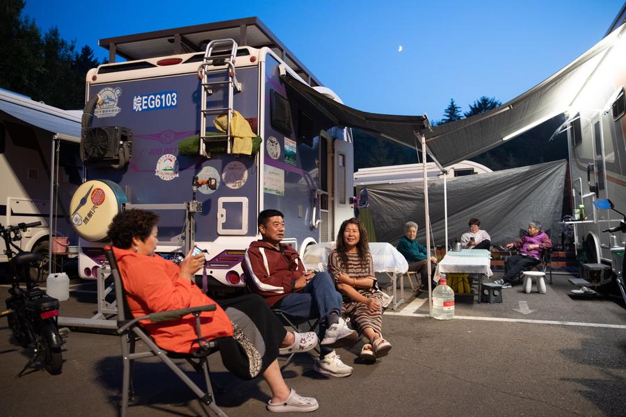 NANJING, Oct. 27 (Xinhua) -- At a motorhome site in east China's Jiangsu Province, Zhang Hong switched on a diesel stove to prepare supper while her friends hung freshly washed clothes on racks or relaxed by the lake.