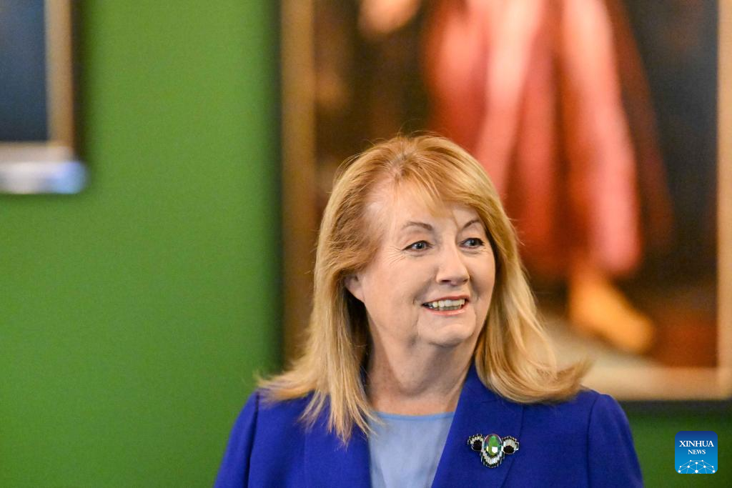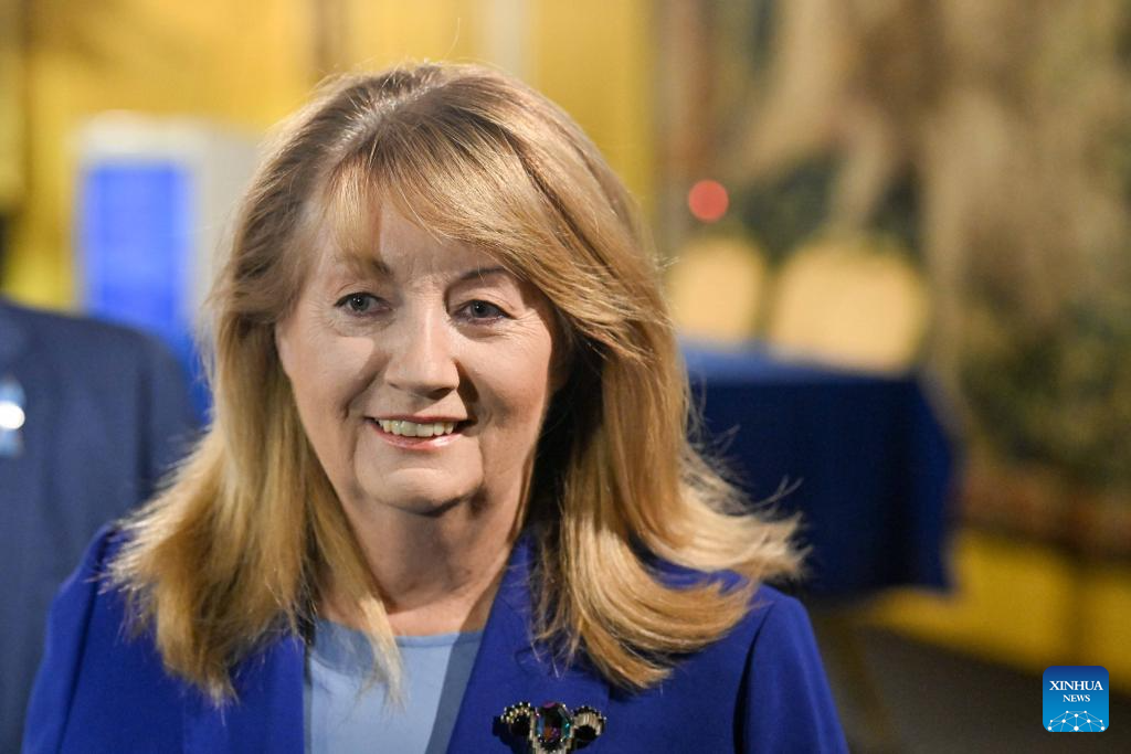 Vilija Blinkeviciute, leader of the Social Democratic Party, attends a press conference in Vilnius, Lithuania, Oct. 28, 2024. Lithuania's opposition Social Democratic Party (LSDP) won parliamentary election runoff on Sunday, according to preliminary results of the Central Electoral Commission. (Photo by Alfredas Pliadis/Xinhua)