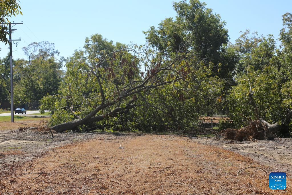 Pecan trees blown down by Hurricane Helene are seen in one of Randy Hudson's orchards in Ocilla, Georgia, the United States, on Oct. 25, 2024. (Xinhua/Liu Yanan)