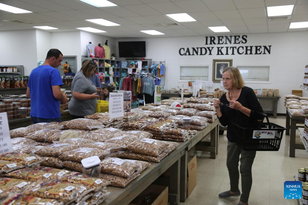 Customers shop at a pecan store by Ellis Bros. Pecans Inc. in Vienna, Georgia, the United States, on Oct. 25, 2024. (Xinhua/Liu Yanan)