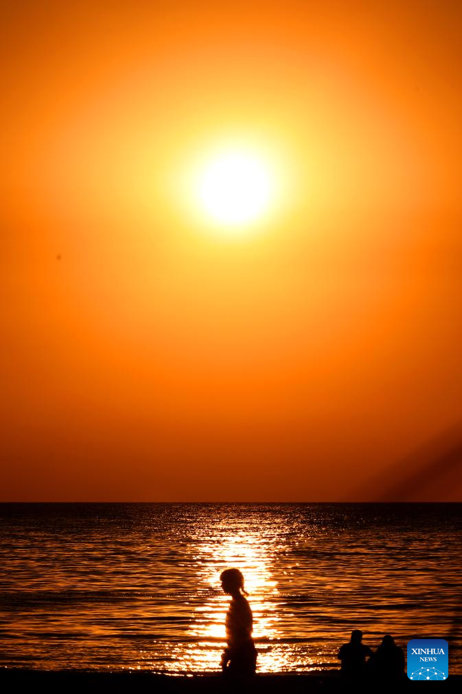 People enjoy themselves on a beach in Beirut, Lebanon, on Oct. 26, 2024. (Xinhua/Bilal Jawich)