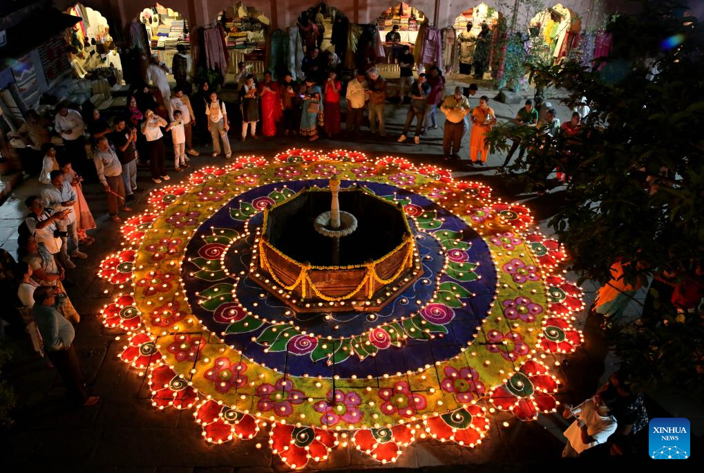 People light oil lamps for the upcoming Diwali, or the Hindu festival of lights, in Bhopal, the capital of India's Madhya Pradesh state, Oct. 26, 2024. (Str/Xinhua)