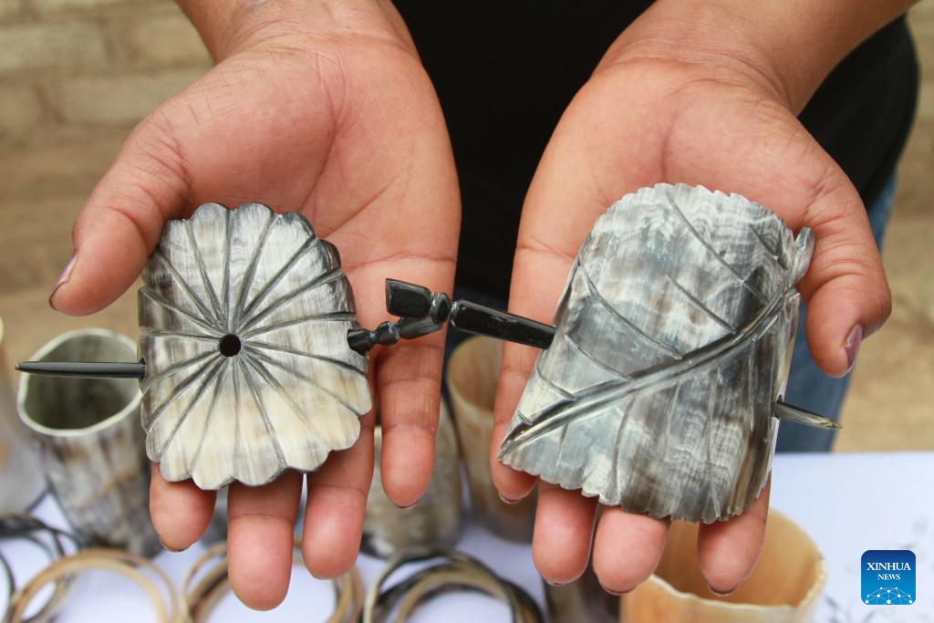 MARONDERA, Zimbabwe, Oct. 29 (Xinhua) -- Cow horns are often regarded as waste material at slaughterhouses, a Zimbabwean craftsman, however, has struck gold in them.