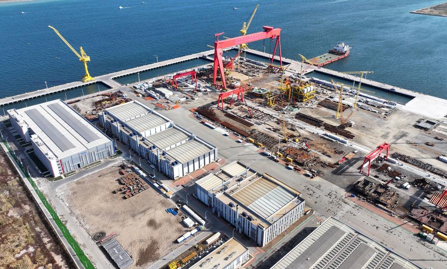 Covering an area of about 575,000 square meters, this base built along the coast of the Bohai Sea focuses on producing offshore oil and gas platforms and high-end offshore products such as liquefied natural gas modules, according to its constructor China Offshore Oil Engineering Company (COOEC), a subsidiary of the China National Offshore Oil Corporation.
