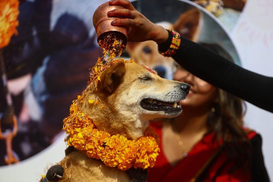 A dog is worshipped during the Hindu festival of Kukur Tihar in Lalitpur, Nepal, Oct. 31, 2024. (Photo by Sulav Shrestha/Xinhua)A dog is worshipped during the Hindu festival of Kukur Tihar in Lalitpur, Nepal, Oct. 31, 2024. (Photo by Sulav Shrestha/Xinhua)A dog is worshipped during the Hindu festival of Kukur Tihar in Lalitpur, Nepal, Oct. 31, 2024. (Photo by Sulav Shrestha/Xinhua)A dog is worshipped during the Hindu festival of Kukur Tihar in Lalitpur, Nepal, Oct. 31, 2024. (Photo by Sulav Shrestha/Xinhua)A dog is worshipped during the Hindu festival of Kukur Tihar in Lalitpur, Nepal, Oct. 31, 2024. (Photo by Sulav Shrestha/Xinhua)■
