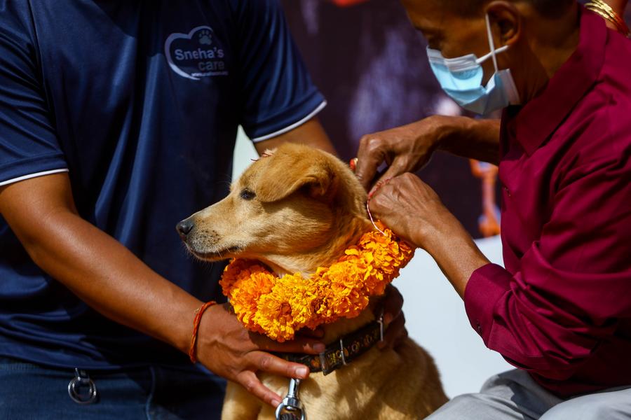Asia Album: Kukur Tihar festival celebrated in Nepal-Xinhua