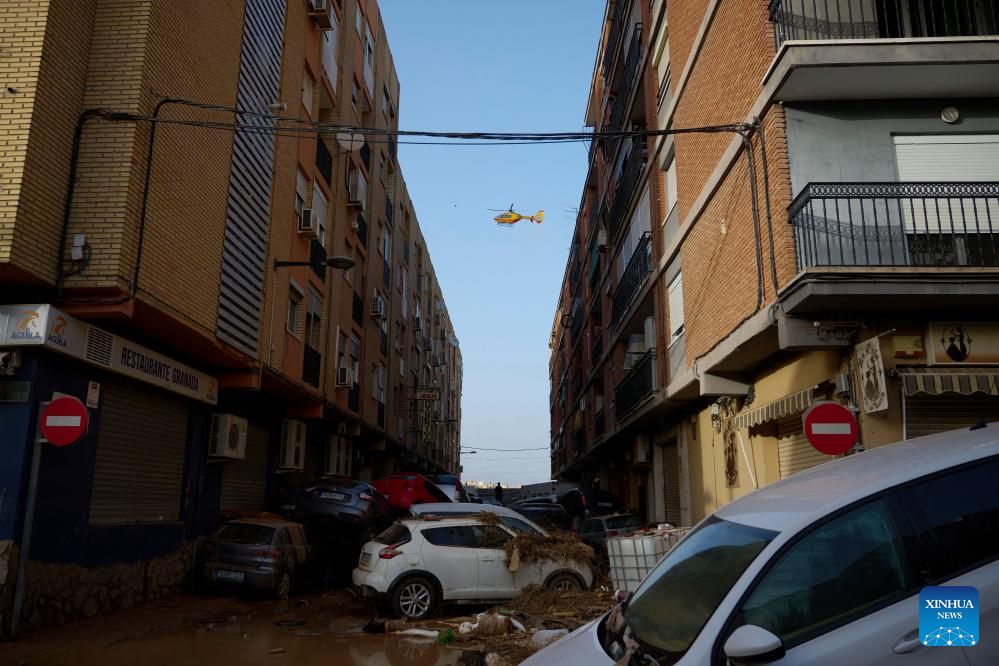 This photo shows a view of the flood-hit area in Valencia, Spain, Oct. 30, 2024. The death toll from rain-triggered flash floods in Spain has risen to at least 158, with the number likely to increase in the coming days, according to emergency rescue services in the country on Thursday afternoon. (Photo by Pablo Morano/Xinhua)