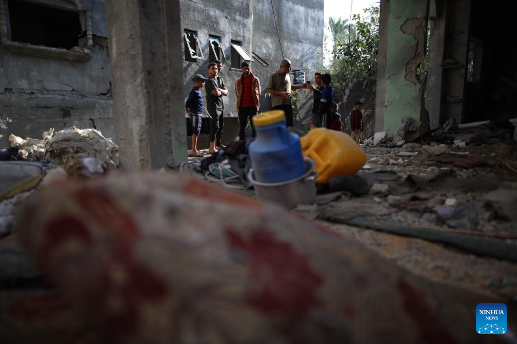 Palestinians are seen at the site of a house destroyed by an Israeli airstrike, in the city of Deir al-Balah in the central Gaza Strip, on Nov. 1, 2024. The Palestinian death toll from ongoing Israeli attacks in Gaza has risen to 43,259, the Gaza-based health authorities said in a statement on Friday. (Photo by Marwan Dawood/Xinhua)