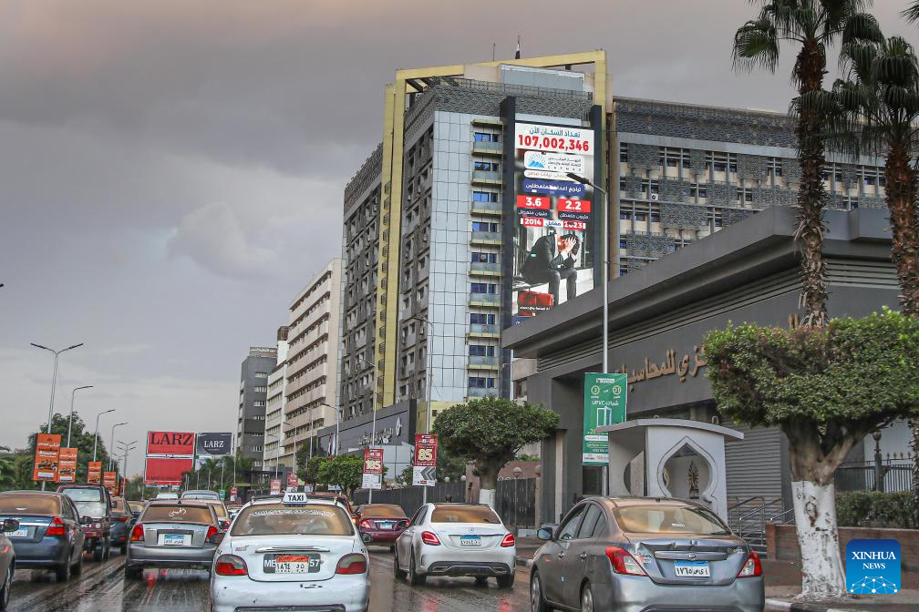 This photo taken on Nov. 2, 2024 shows a billboard indicating Egypt's population in Cairo, Egypt. Egypt's population reached 107 million, the population clock of the country's statistics agency showed on Saturday. (Xinhua/Ahmed Gomaa)